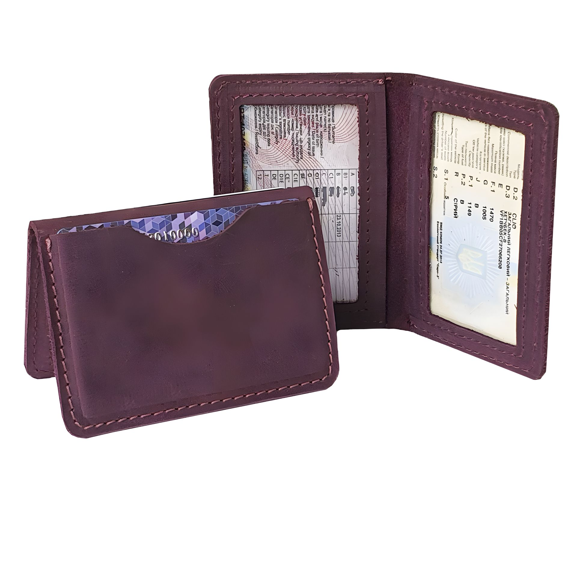 Шкіряна обкладинка бордового кольору. Підходить для водійських прав, техпаспорту, id, карток