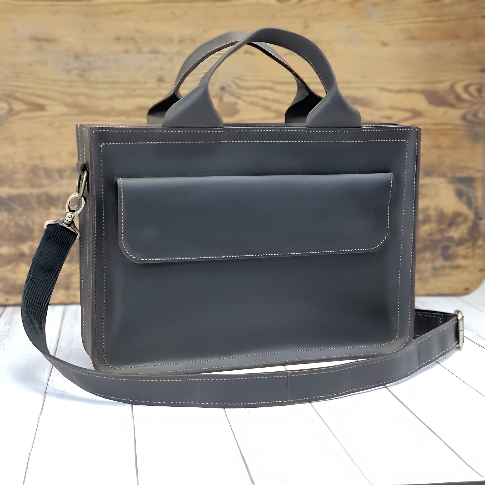 Шкіряна сумка формату А4 . Пошита з натуральної шкіри ВРХ, вощеного , вінтажній Crazy Horse. Розміри сумки 25*35*7 см дозволяють покласти документи А4 , невеликий ноутбук або планшет. Всередині основного відділу є відділ задньої стінки і кишеню поменше. Закривається основний відділ якісної металевої блискавкою. Попереду велика кишеня, який закривається клапаном на магнітних кнопках. У сумці є короткі ручки для перенесення в руках і довгий (150см) ремінь через плече , який регулюється по довжині.