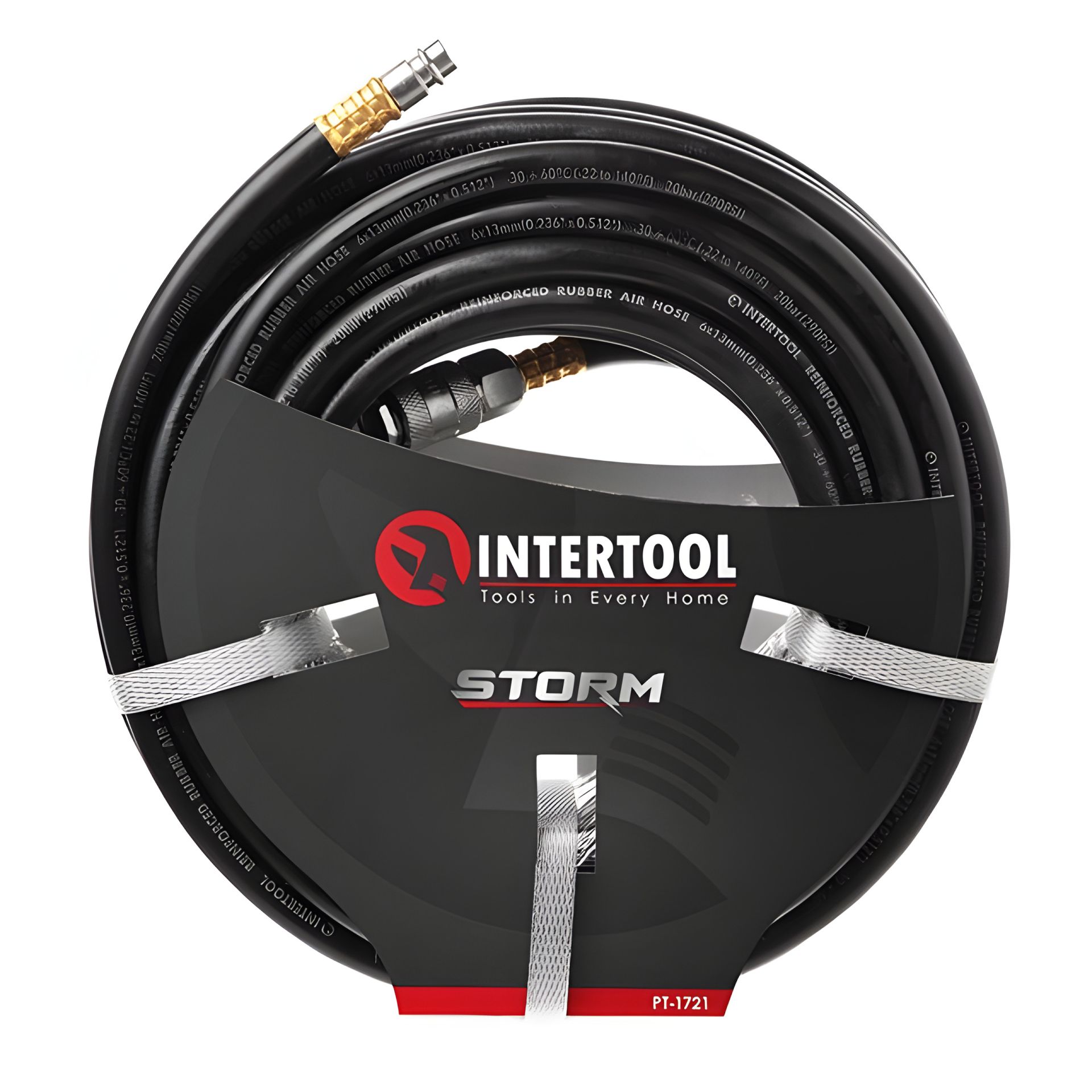 Шланг гумовий повітряний, армований, до 20 атм, 6×13 мм, 20 м, зі швидкороз'ємними з'єднаннями, STORM INTERTOOL PT-1721