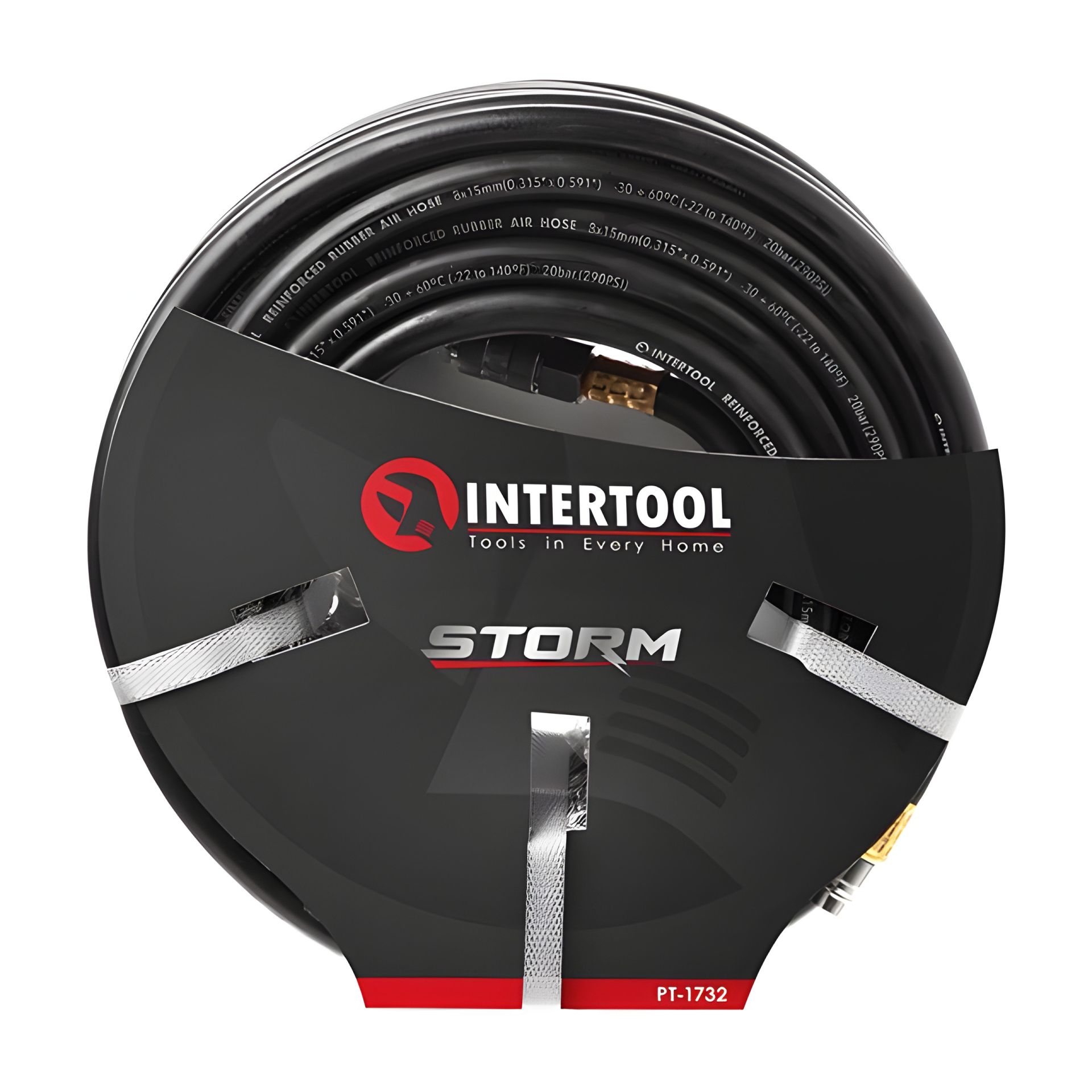 Шланг гумовий повітряний, армований, до 20 атм, 8×15 мм, 20 м, зі швидкороз'ємними з'єднаннями, STORM INTERTOOL PT-1732