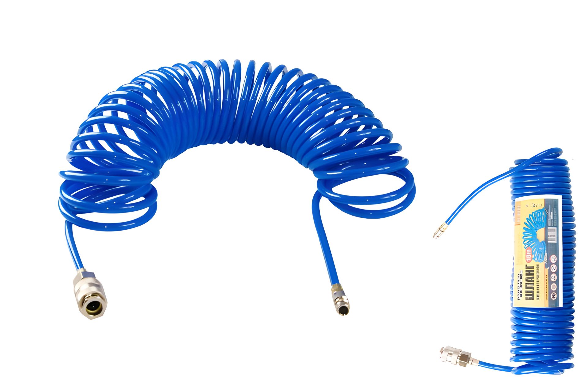 Пневматичний спіральний шланг з PU, 15 атм, 5,5х8 мм, 10 м з швидкознімними з'єднаннями від MASTERTOOL 81-8491