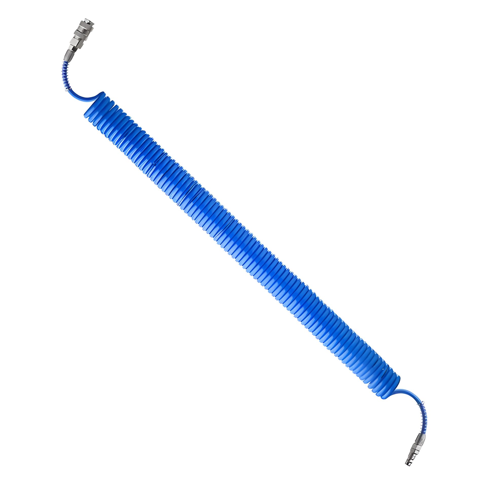 Шланг дуже гнучкий, здатен розтягуватись до 15 метрів під час роботи. Навіть під навантаженням він продовжує зберігати свою спіральну форму, тому вам не потрібно турбуватися про те, щоб скрутити його після закінчення роботи.