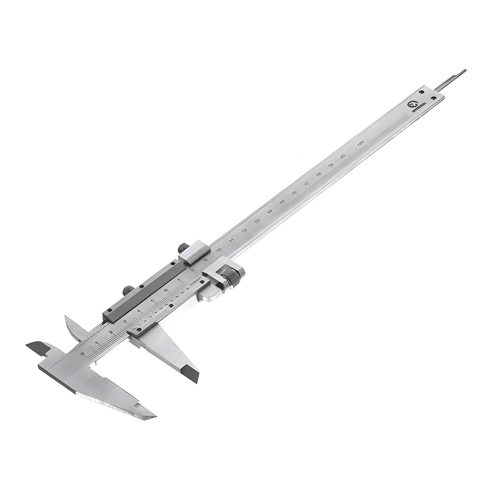 Губки штангенциркуля з двох сторін забезпечують точні вимірювання для розмітки внутрішніх та зовнішніх параметрів. Вимірювальна довжина становить 200 мм, довжина щелепи 40 мм. Оснащений коліщатком для підведення пальцем та стопорним гвинтом