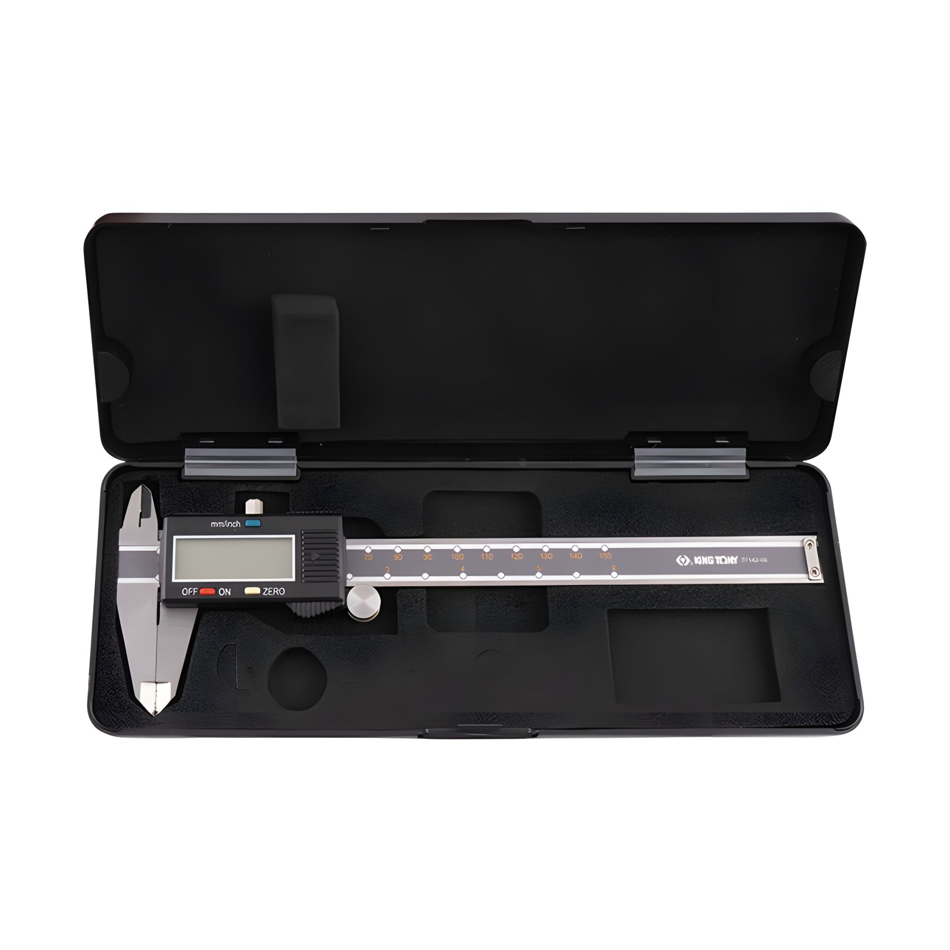 Гартована нержавіюча сталь – секрет надійності та довговічності ручного інструменту King Tony. Ручний інструмент стійкий до перепадів температур та корозії. Штангенциркуль електронний (200мм) поставляється в зручному пластиковому кейсі, обробленому м'якою обшивкою зсередини.