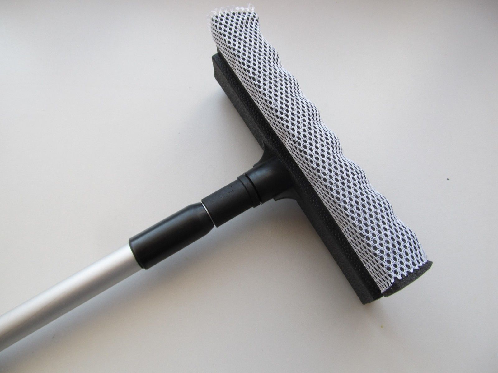 Окномойка с телескопической ручкой, мочалкой в сеточке и резиновым водосгоном поможет Вам без труда вымыть окна во всем доме.