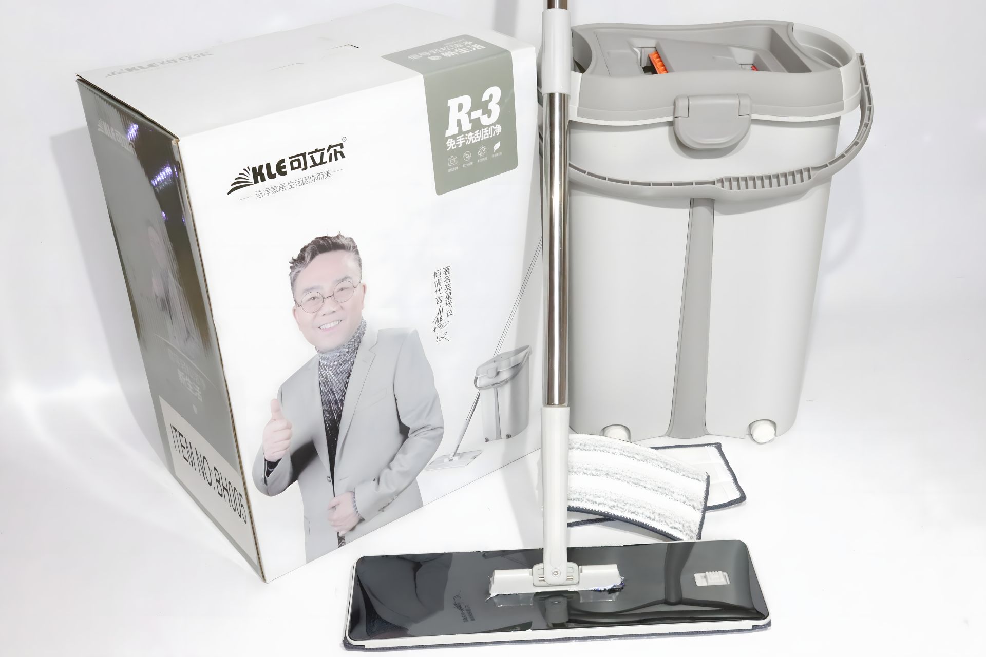 - відро має 2 відсіки, одне для полоскання й інше для віджимання та залишків води. З обох сторін відра є зручні отвори для зливу води, а також 2 гумові пробки знизу. Механізм віджиму легко знімається, що полегшує доступ для внутрішнього чищення відра. Пластик, який використовується у відрі та швабрі товстий та якісний, що вказує на високу надійність.