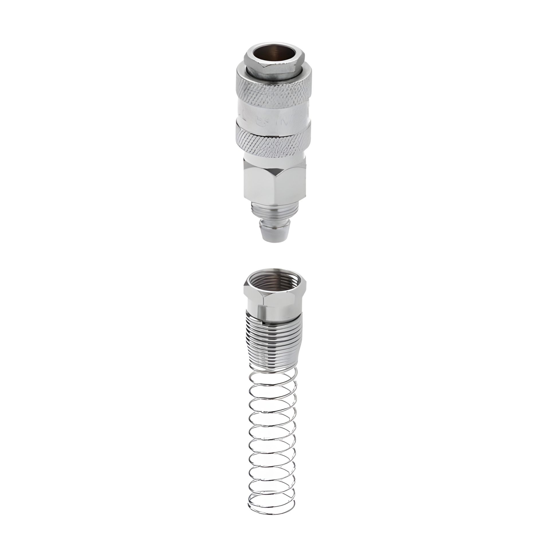 Швидкороз'ємне з'єднання з пружиною INTERTOOL PT-1832 використовується для встановлення на спіральні та прямі повітряні шланги, щоб забезпечити швидке підключення пневмоінструменту до компресора або повітряної магістралі. Також їх використовують для ремонту шлангів з ушкодженнями та для заміни конекторів що вийшли з ладу.