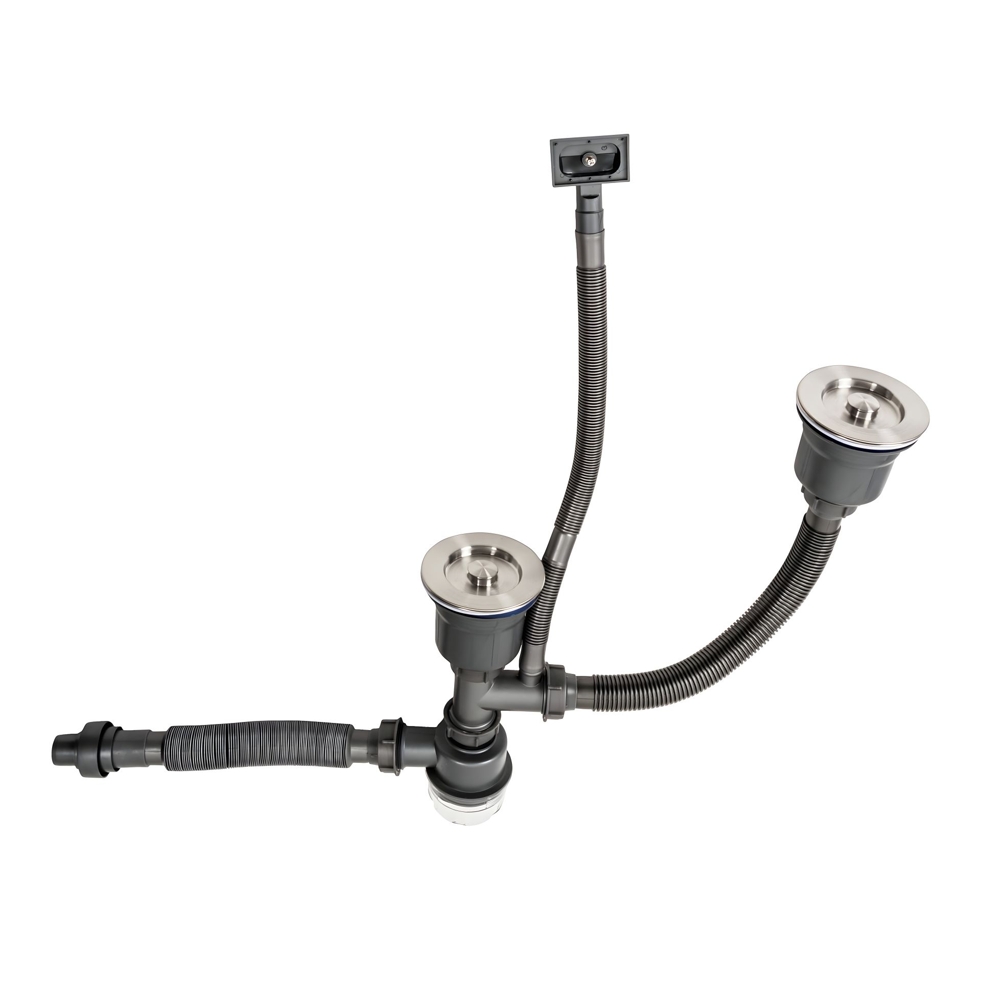 Оновіть вашу кухню з сучасним і практичним подвійних сифоном HB340 Platinum у сірому кольорі. Цей подвійний сифон - ідеальний вибір для вашої кухонної мийки додаючи не лише стиль, але й ефективність до вашого простору.