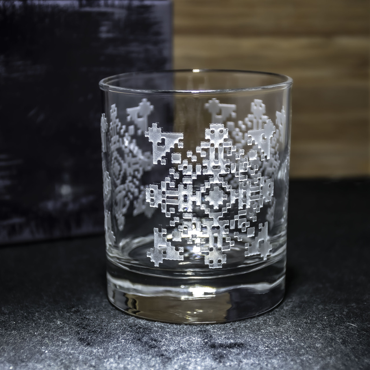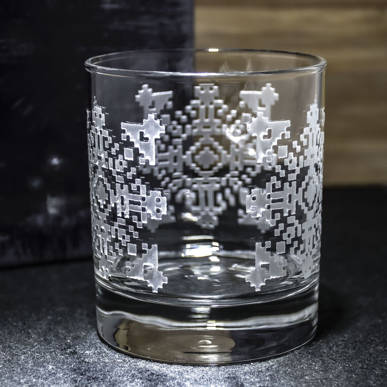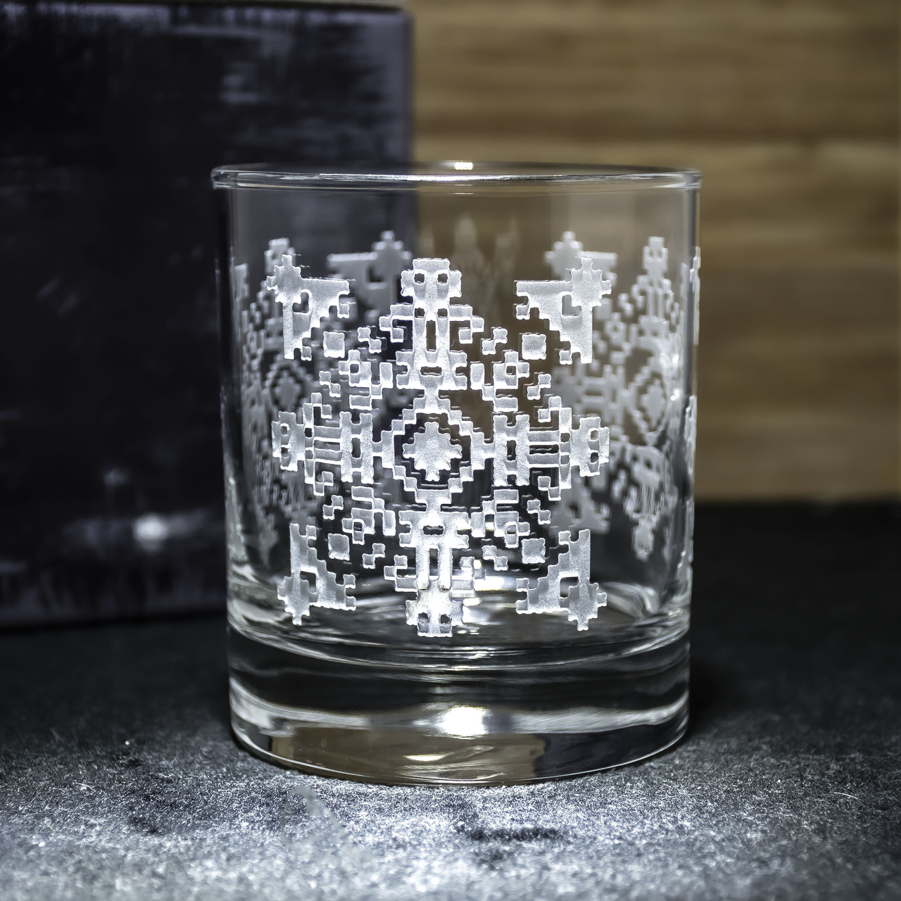 Склянку для віскі, води та соку з гравіруванням українського орнаменту У подарунковій коробці