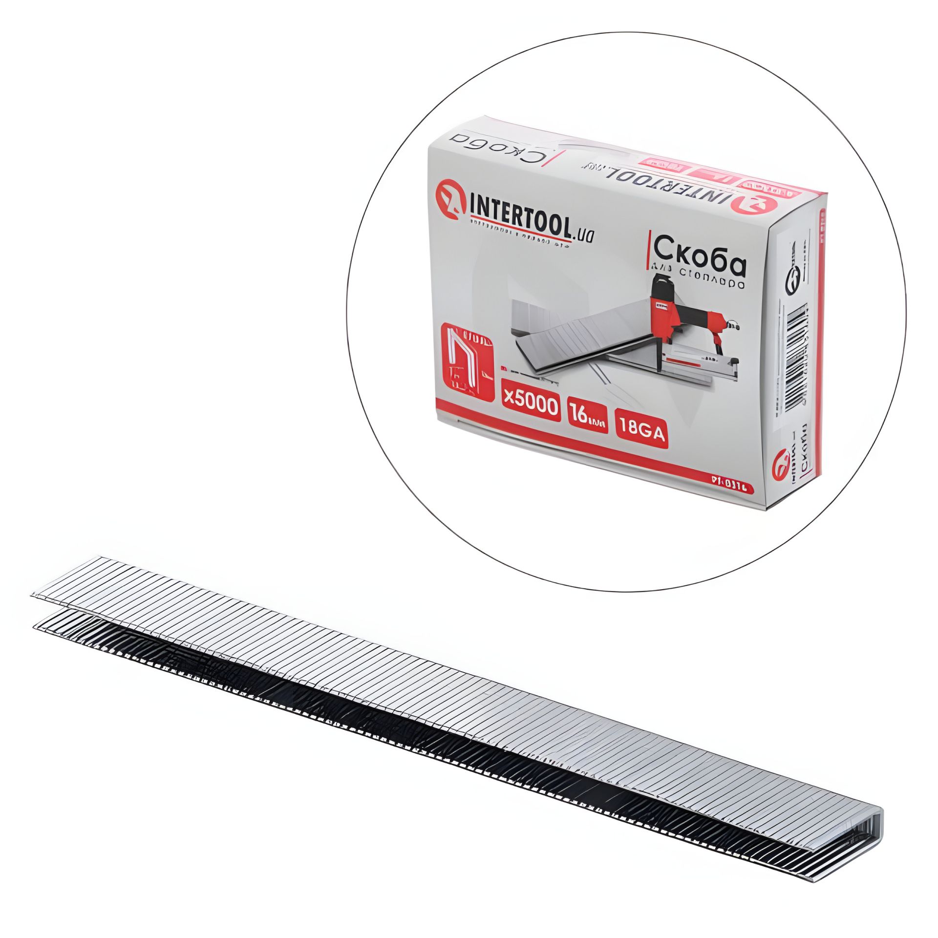 Скоба для степлера PT-1612, розмір 16×5,7(5,8) мм, 18GA, 1,25×1,0 мм, упаковка 5000 шт., INTERTOOL PT-8316