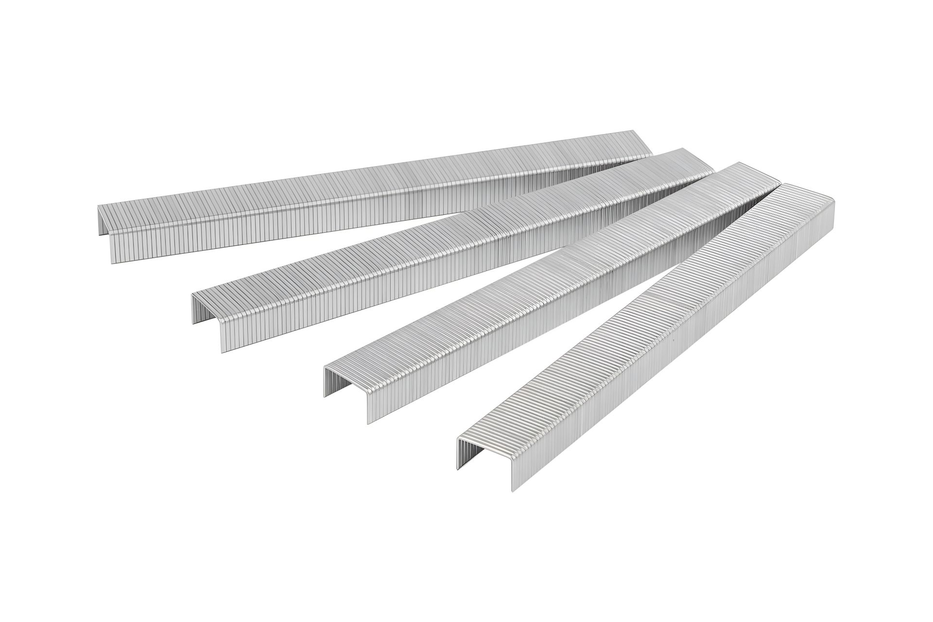 матеріалів середньої товщини. • Меблевого виробництва та ремонту. • Оздоблювальних та будівельних робіт. • Встановлення декоративних елементів та покриттів. Упаковка: Скоби упаковані в коробку, що забезпечує зручність транспортування та зберігання. Упаковка містить 21 000 шт., що є ідеальним вибором для великих обсягів робіт. Примітка: Перед покупкою переконайтеся, що пневмостеплер підтримує скоби типу 80 з висотою 8 мм. • для м'яких та твердих порід дерева, ДСП, ДВП, гіпсокартону, пластику тощо. • загартовані