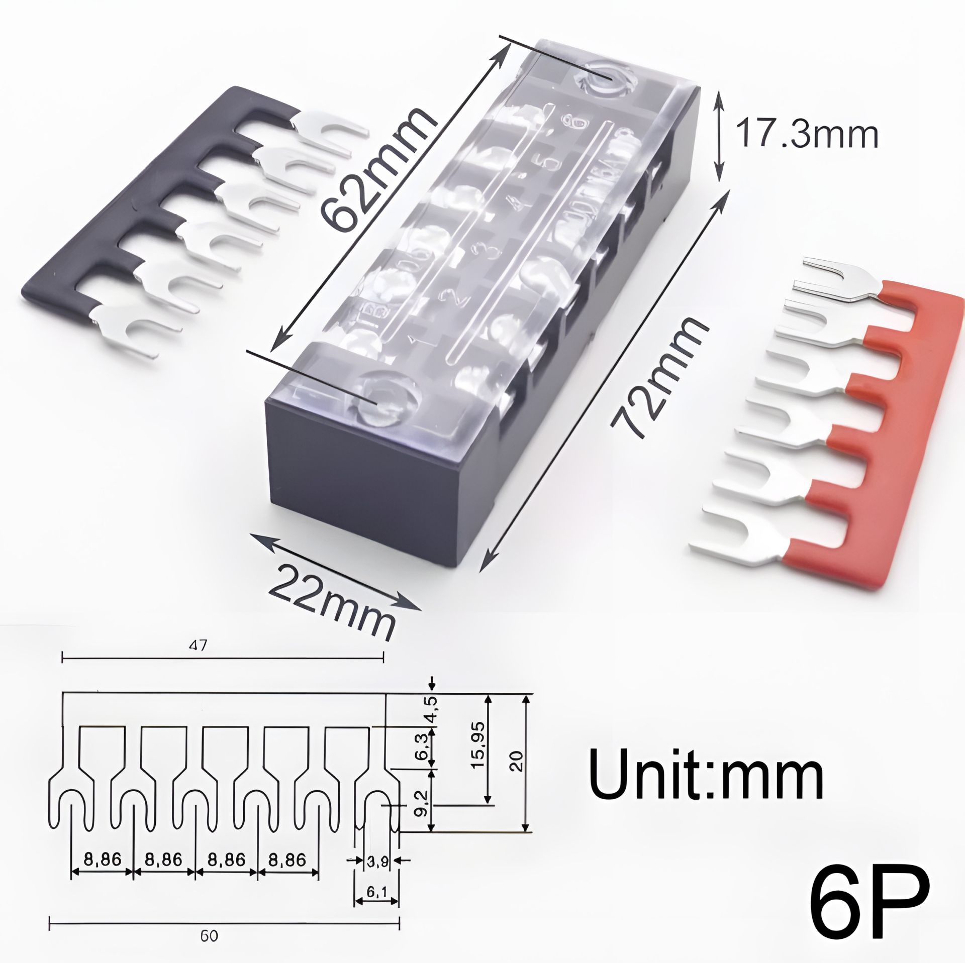 Споріднювальні колодки для дротів 15 А до 400 В 6P