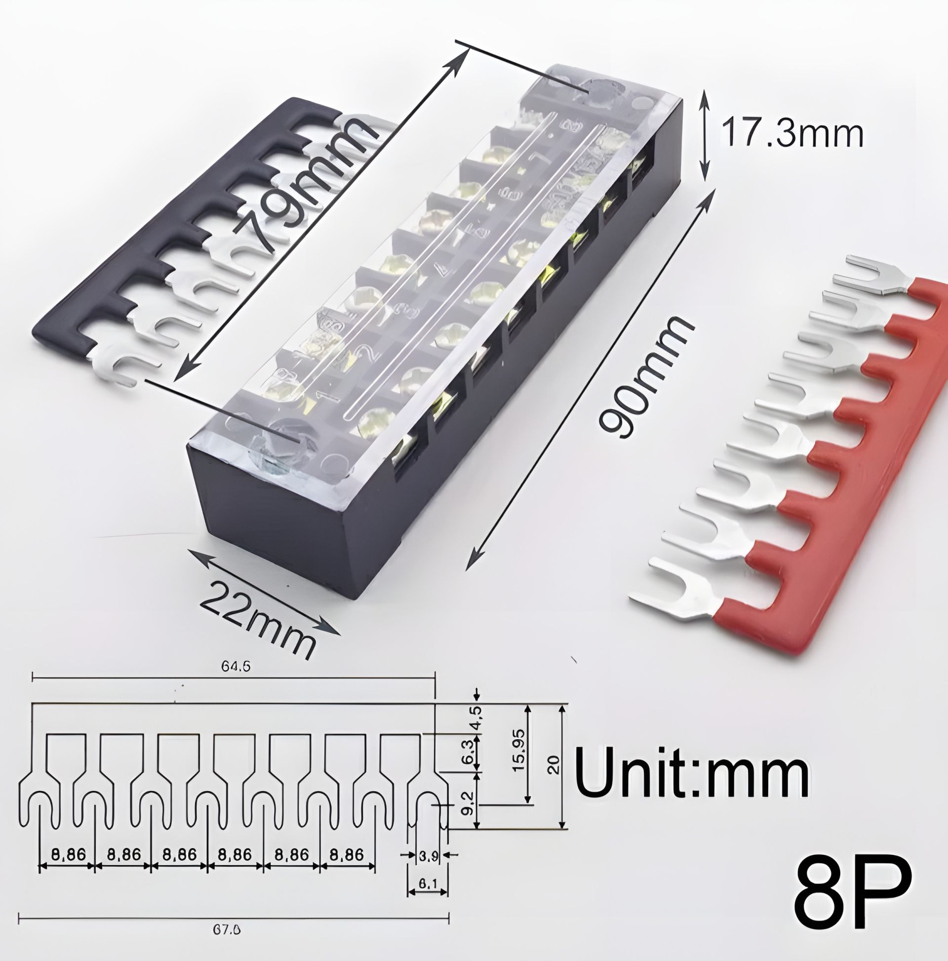 Споріднювальні колодки для дротів 15 А до 400 В 8P