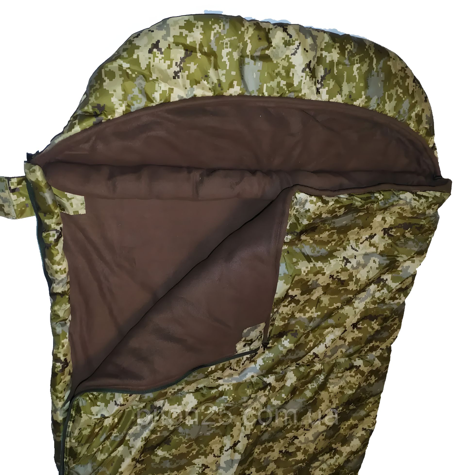 Армійський широкий спальний мішок (до -25) спальник Ширина 105см! Довжина 210см Армійський спальний мішок ПІТОН Просимо звернути увагу, що це широкий спальник! Тип: ковдровий спальник з капюшоном Розмір в упаковці (Compression bag size): 45*30 см Зовнішнє покриття: наметова тканина в пікселях Наповнювач: силіконізований синтепон 400 г/м3 Внутрішнє покриття: фліс Вага: 3.7 кгУпаковка: компресійний мішок Температурний режим (Т): -15°С - 25°С водонепроникний Колір: у пікселях Розмір спальника (широкий): 210*105см капюшон напівкруглої форми, оснащений зручною та практичною системою стягування. спальний мішок чудово зберігає тепло завдяки утепленому капюшону блискавка забезпечена клапаном-липучкою, завдяки якому вона не розстібається самостійно водовідштовхувальне просочування зовнішньої тканини створює додатковий комфорт під час вологої погоди спальник може використовуватися як ковдра силіконізований синтепон швидко відновлюють форму після стиснення, має кращу теплоізоляцію та довше служать двосторонній бігунокХарактеристики