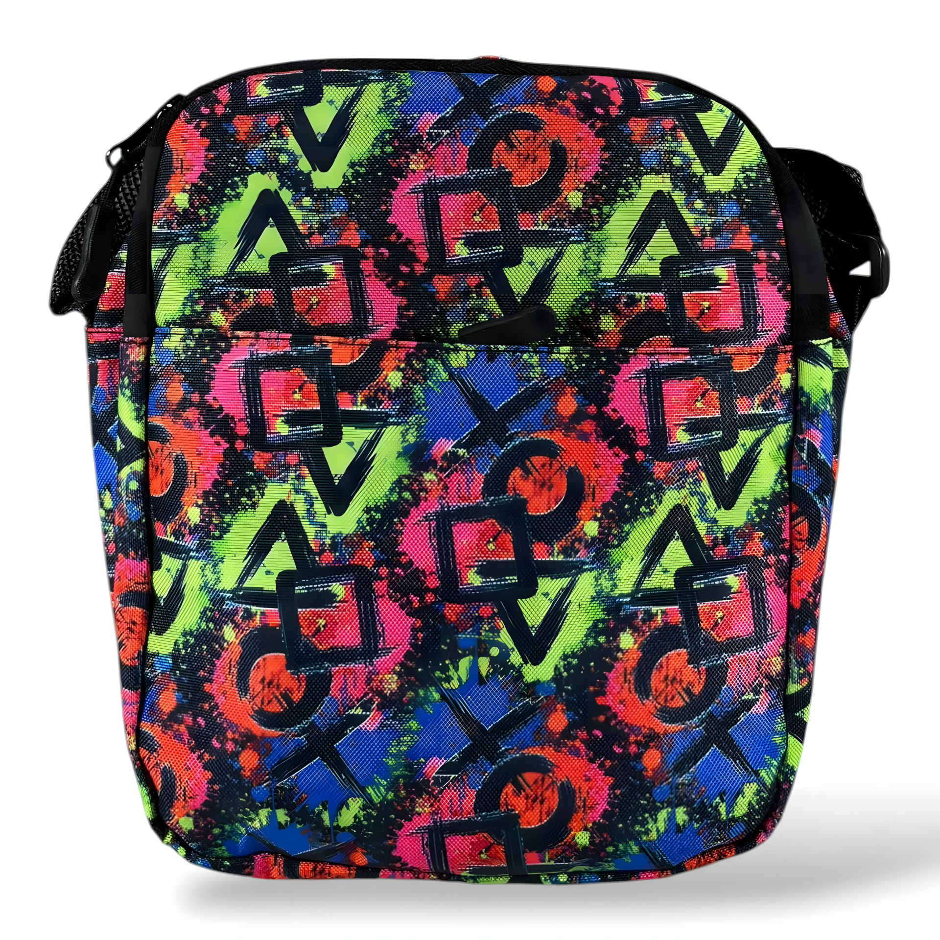 Спортивна сумка через плече, з кольоровим принтом, чорна 20