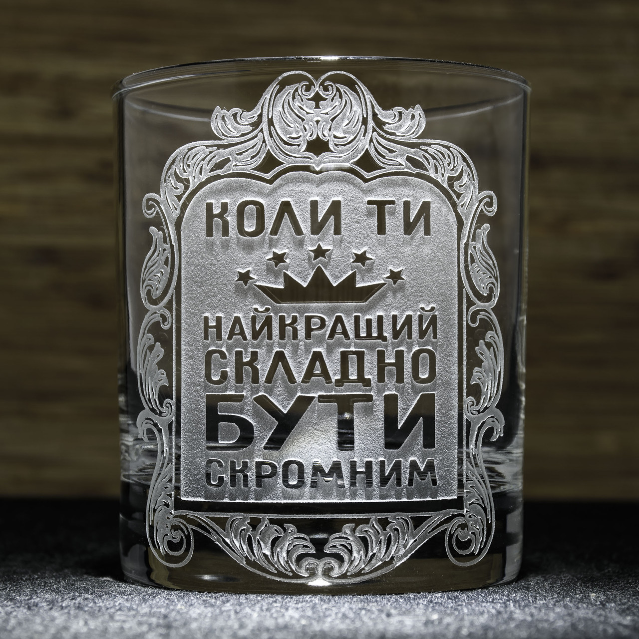 Склянка для води та віскі з ручним механічним гравіюванням Коли ти найкращий складно бути скромним в подарунковій коробці