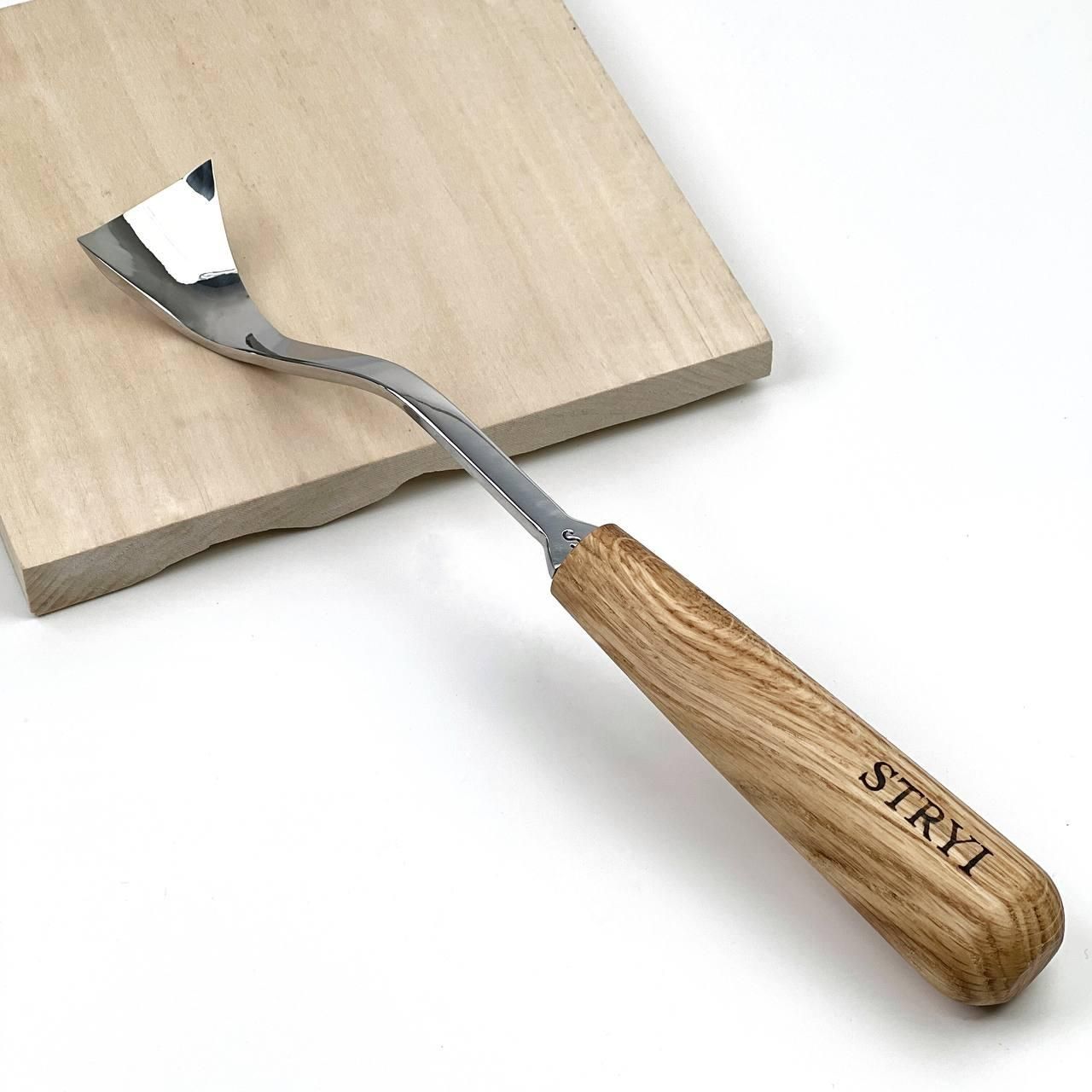 Кована клюкарза STRYI Maestro профіль №5 шириною 50 мм — це потужний професійний інструмент для роботи з масивною деревиною, створений для глибоких виборок, формування чаш, кукс, посуду, виїмок у рельєфному різьбленні та великих об’ємних форм. Ширина 50 мм дозволяє швидко знімати великий шар матеріалу, зберігаючи при цьому чистоту різу та стабільний контроль.