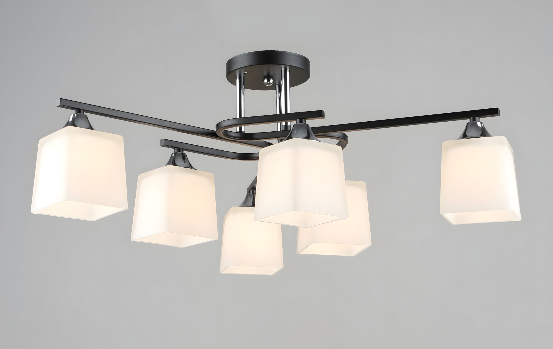 Люстра оснащена 6 скляними плафонами, які рівномірно розсіюють світло, створюючи м'яку і затишну атмосферу.