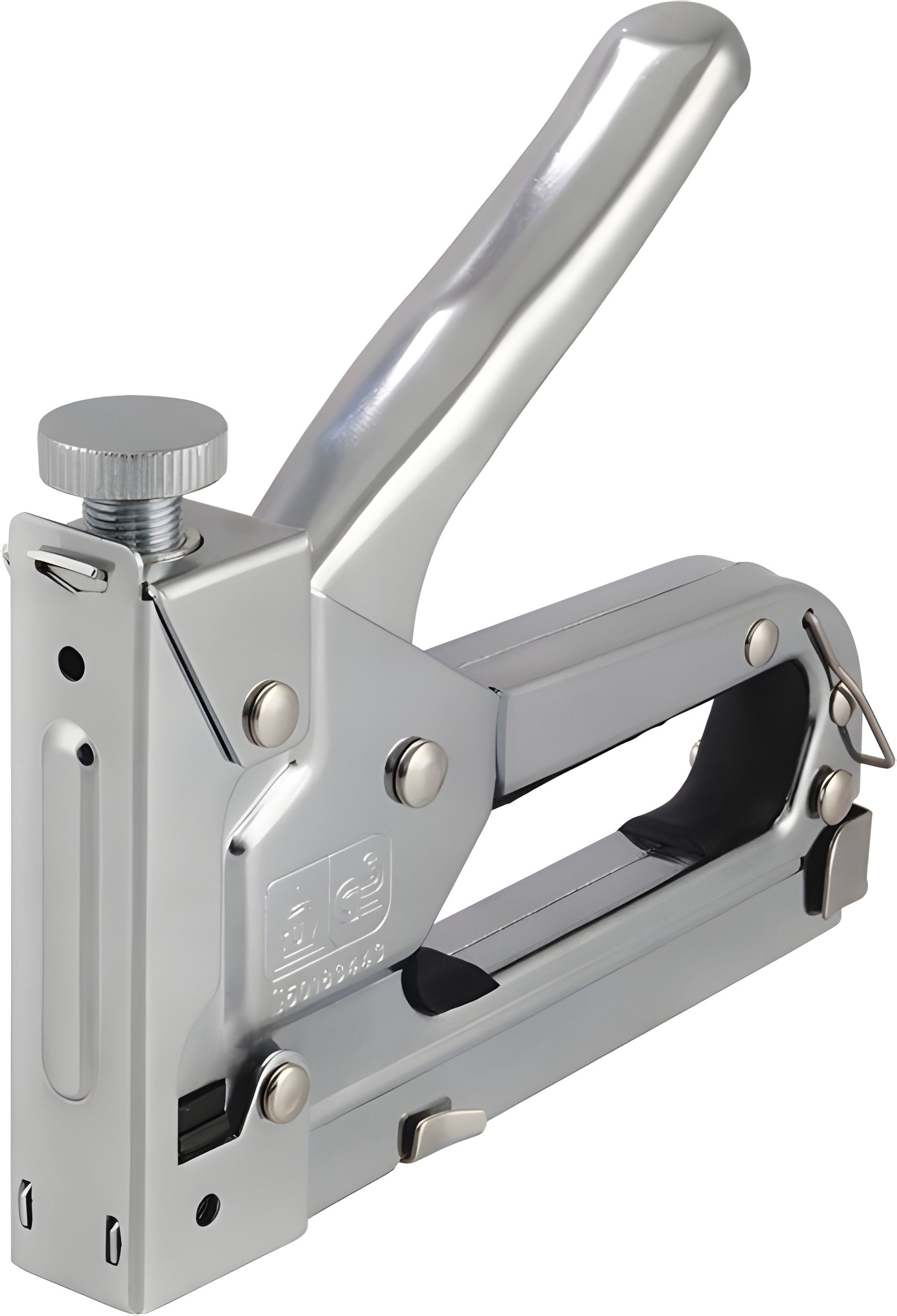 Штампований корпус степлера виготовлений із конструкційної сталі. Оснащений регуляторним механізмом контролю сили удару. Висота скоб 4-14 мм. Товщина скоб – 0,8 мм.