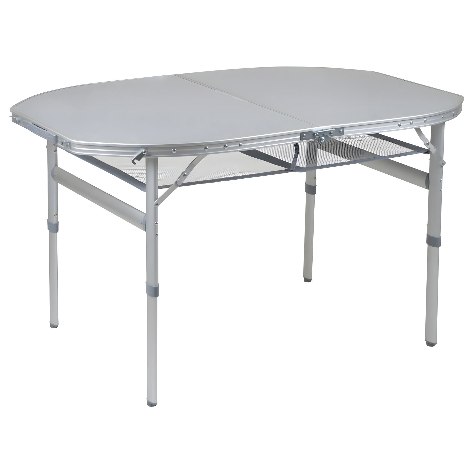 Великий та одночасно легкий стіл з термо- і вологостійкою стільницею Bo-Camp Premium Oval 120x80 cm Grey з колекції Industrial стане незамінним супутником вашого відпочинку в садку, на дачі чи на природі. Розмір і форма стільниці дозволяє розмістити за ним до 8 людей, а сітка під стільницею допоможе не завантажувати поверхню речами. Корпус столу, виконаний з алюмінію, він легко складається, а розбірні телескопічні ніжки столу регулюються по двох рівнях (36/70 см). Ніжки також можна відрегулювати на нерівній поверхні за допомогою гвинтів.