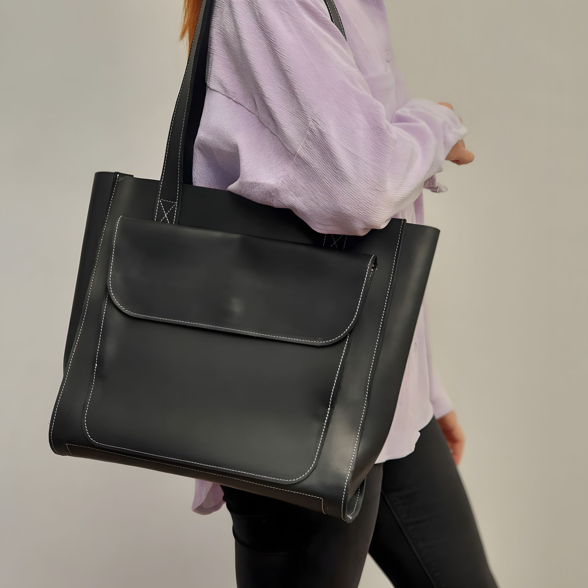 Жіноча шкіряна сумка "шоппер" - це велика і містка сумка, яку можна використовувати для покупок або для повсякденного використання. Вона має просторе основне відділення з кишенями всередині для зберігання речей, а також додаткову кишеню зовні для швидкого доступу до мобільного телефону, гаманця тощо. Шкіряна сумка шоппер GS - це класичний і стильний вибір для жінок, які хочуть мати практичну й елегантну сумку для повсякденного використання. Вона пошита з натуральної, щільної шкіри з вінтажним ефектом старіння - Crazy Horse.