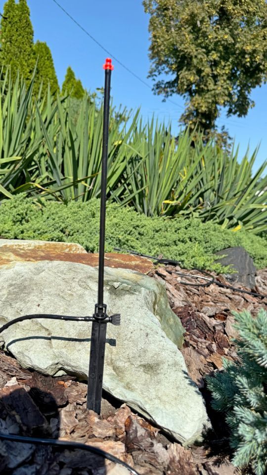 - Встановити стійку в ґрунт у місці поливу.