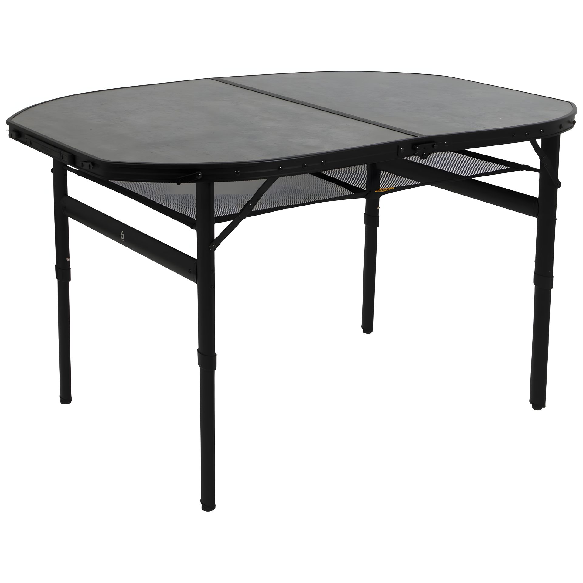 Великий та одночасно легкий стіл Bo-Camp Northgate Oval 120x80 cm Black/Grey з колекції Industrial стане незамінним супутником вашого відпочинку в садку, на дачі чи на природі. Розмір і форма стільниці дозволяє розмістити за ним до 8 людей, а сітка під стільницею допоможе не завантажувати поверхню речами. Корпус столу, виконаний з алюмінію, він легко складається, а розбірні телескопічні ніжки столу регулюються по двох рівнях (36/70 см). Ніжки також можна відрегулювати на нерівній поверхні за допомогою гвинтів. Bo-Camp Northgate Oval можна дуже компактно зберігати і переносити у вигляді кейса, завдяки складаній стільниці і ручці. У транспортному положенні стіл зафіксований чотирма замками, що запобігають мимовільному розкриттю.