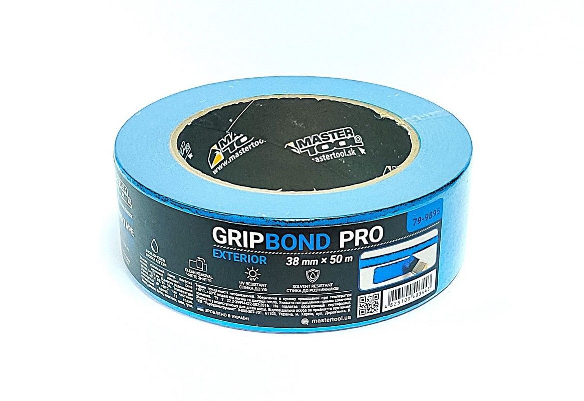 Стрічка малярська для фасадних робіт GripBond Pro Exterior 38 мм×50 м синя MASTERTOOL 79-9895
