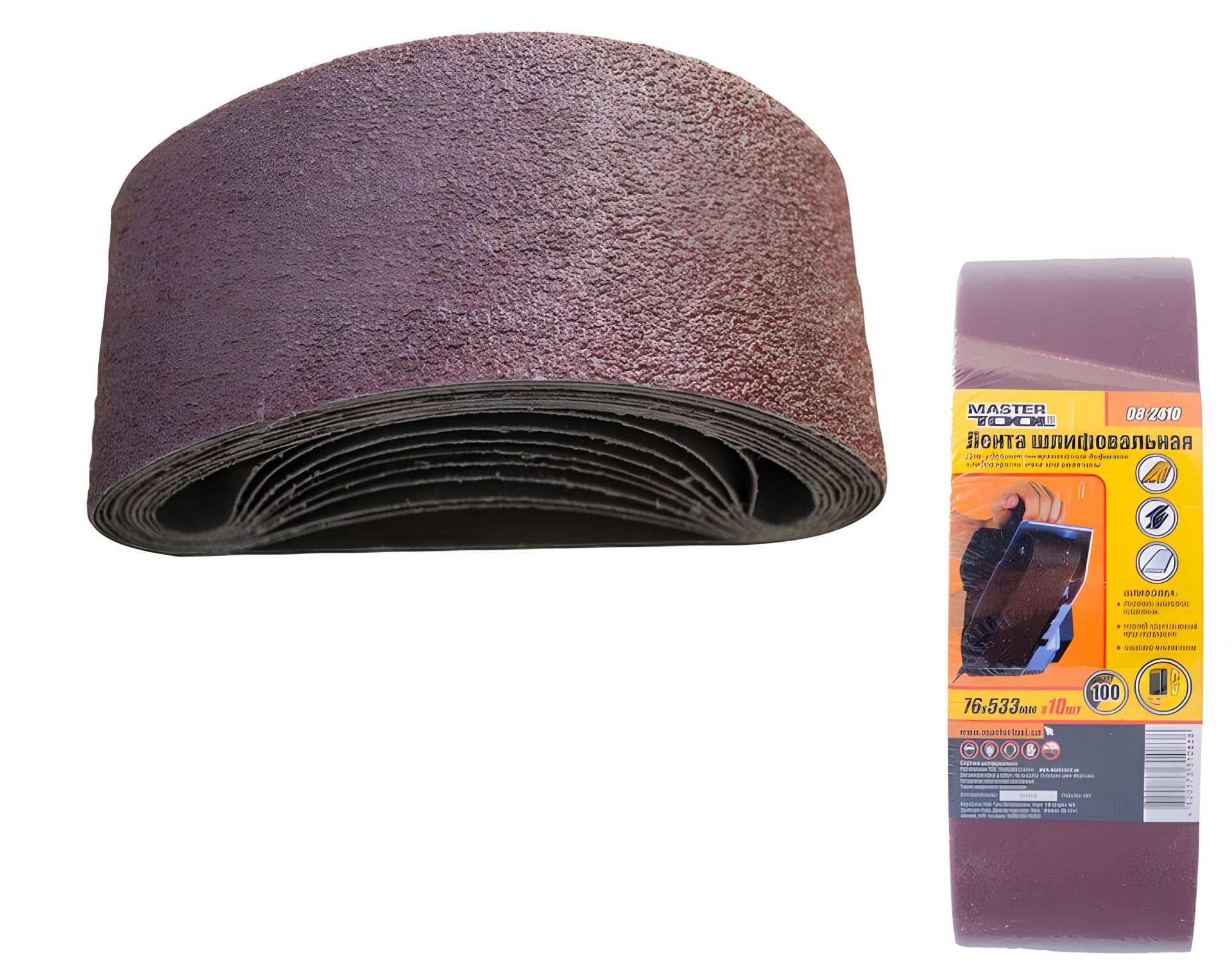 Шліфувальна стрічка зерно 100 76х533 мм 10 шт MASTERTOOL 08-2410