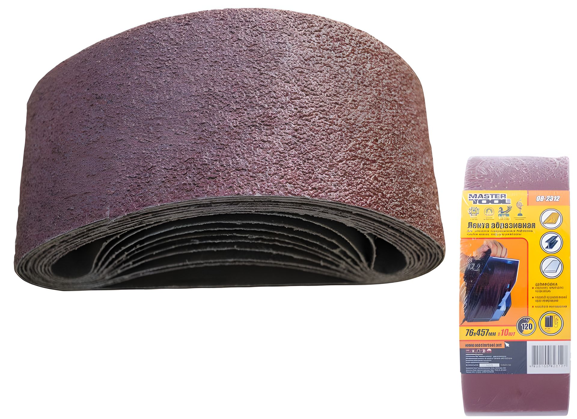 Шліфувальна стрічка зерно 120, 76х457 мм, 10 шт MASTERTOOL 08-2312