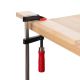 Основа виготовлена з міцної сталевої напрямної, ручка дерев'яна. Завдяки пластиковому наконечнику на затискних губках гарантований захист деталей, що затискаються, від механічних пошкоджень, подряпин.