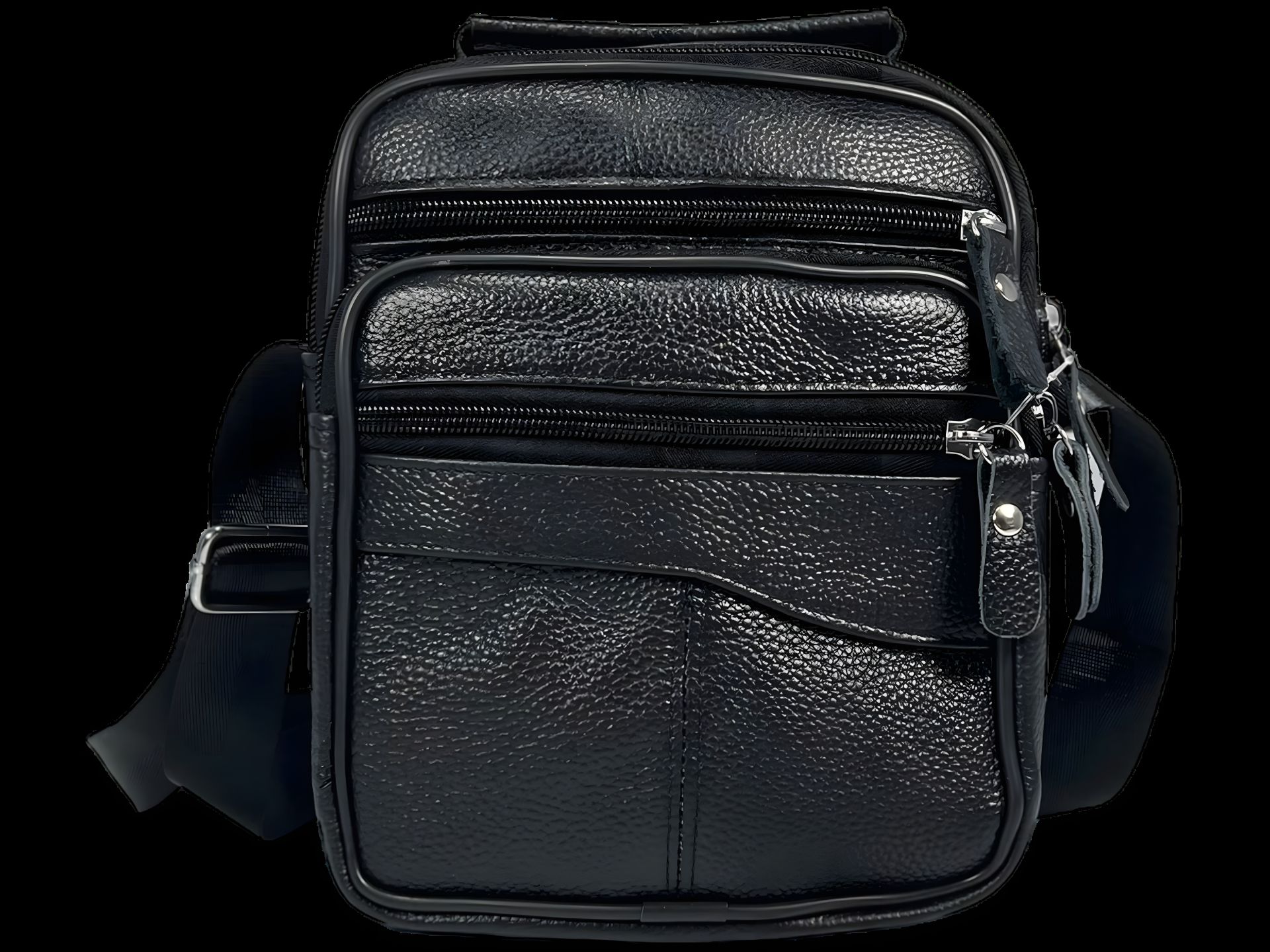 Чорна сумка через плече з натуральної шкіри — ідеальний вибір для стильного чоловіка, який цінує якість та функціональність.