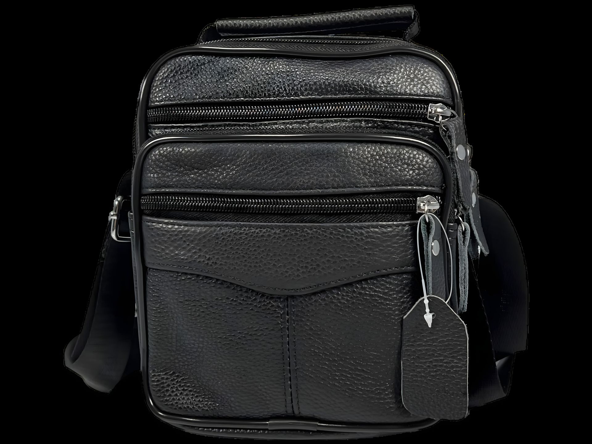 Чоловіча практична сумка через плече з натуральної шкіри, 4 відділення, 3 л, чорна