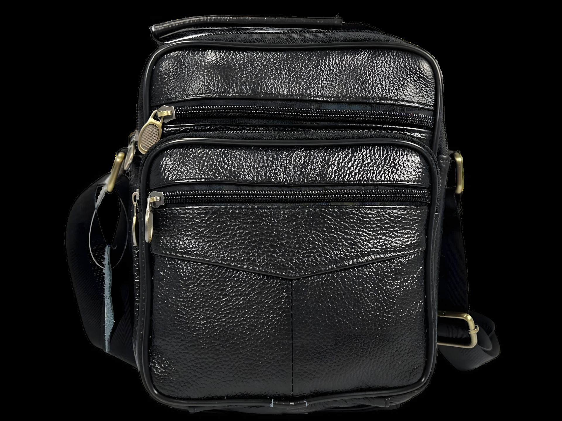 Натуральна шкіряна сумка через плече для чоловіків, чотири відділення, 3 л, чорна