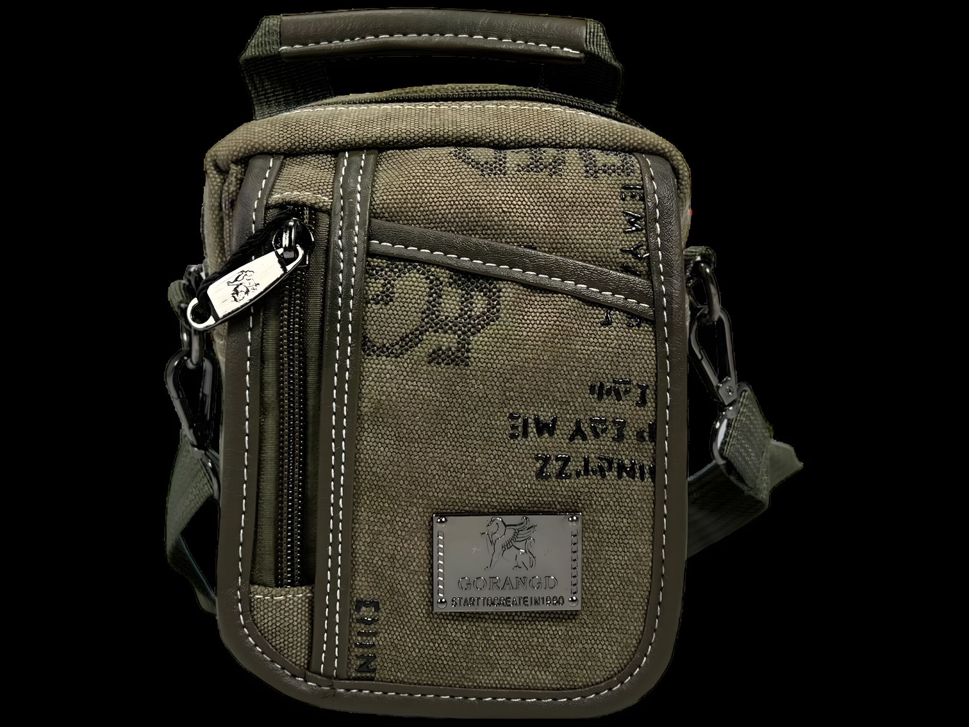 Брезентова сумка через плече з п'ятьма відділеннями, ручки для переносу, колір хакі