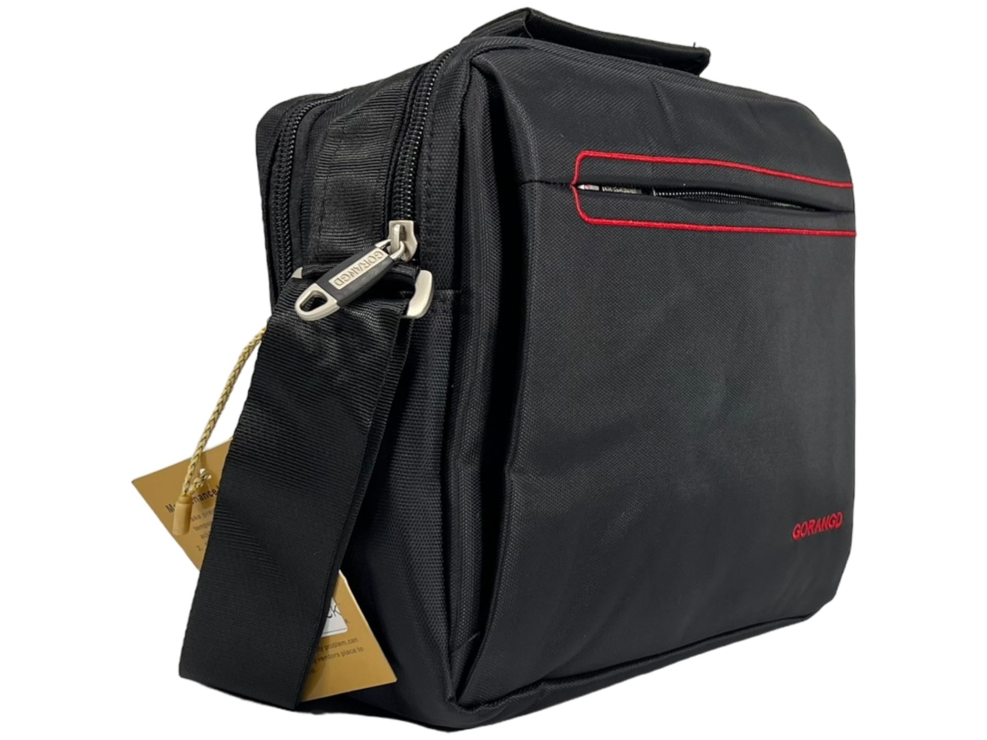 Багатофункціональна та комфортна сумка через плече, міцна, 3 відділення, чорна з червоним