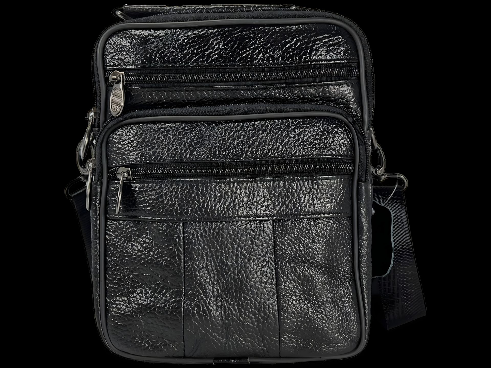 Чоловіча практична сумка через плече з натуральної шкіри, 4 відділення, 3 л, чорна