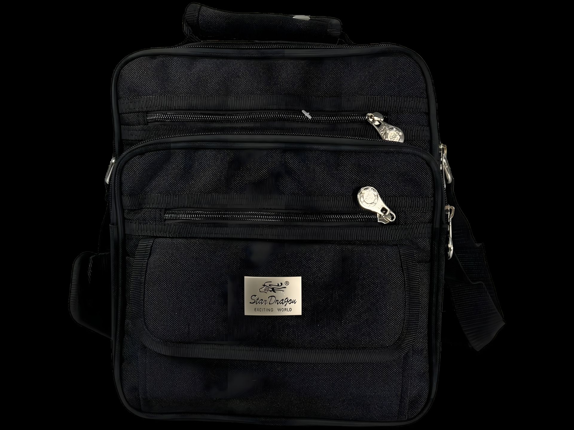 Сумка через плече чорна, 17 л, на чотири відділення, додаткові ручки для переносу