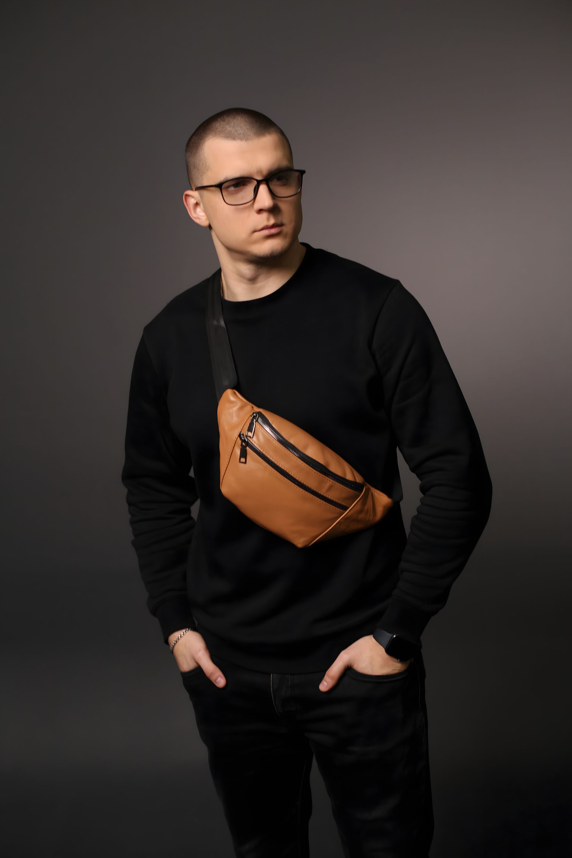 Чоловіча сумка-бананка з натуральної гладкої шкіри - це вражаючий аксесуар, який поєднує в собі стиль та практичність.