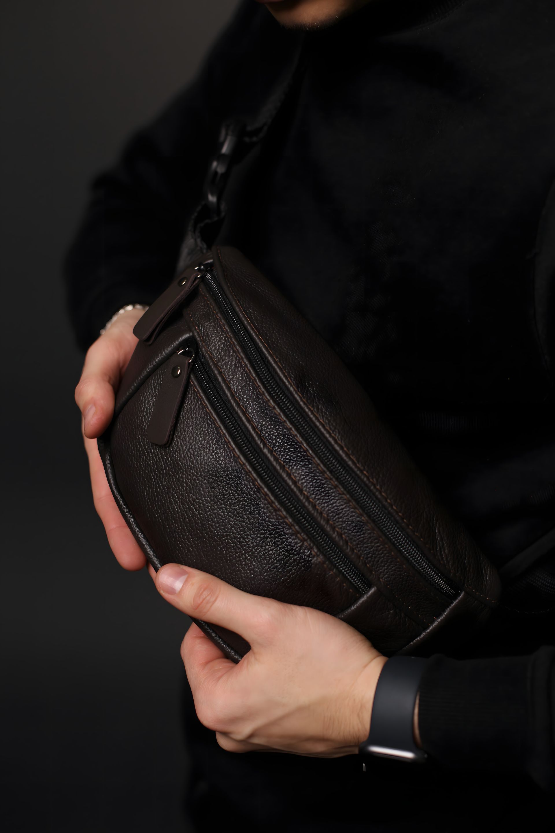 Ця стильна чоловіча поясна сумка з натуральної шкіри - ексклюзивний аксесуар, який виражає ваш смак і практичність одночасно. Виготовлена з натуральної шкіри високої якості, вона вражає своєю якістю та елегантністю.