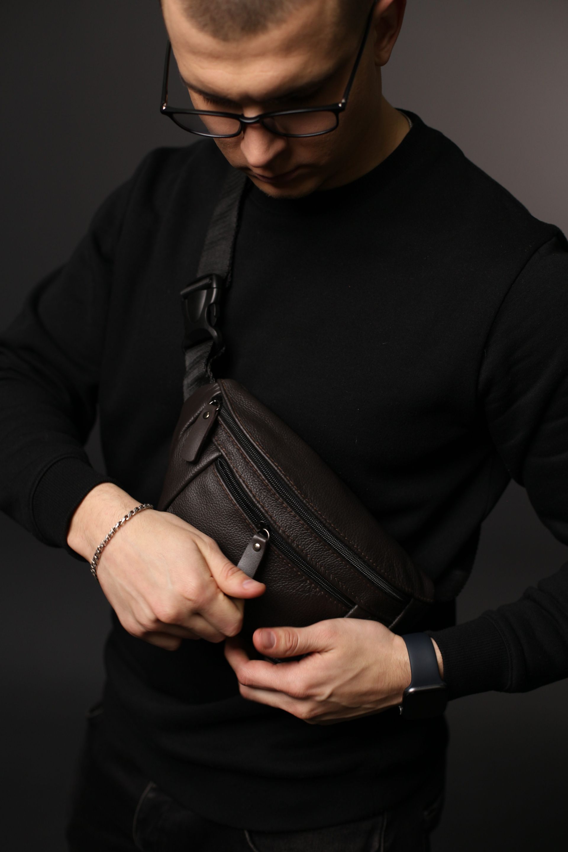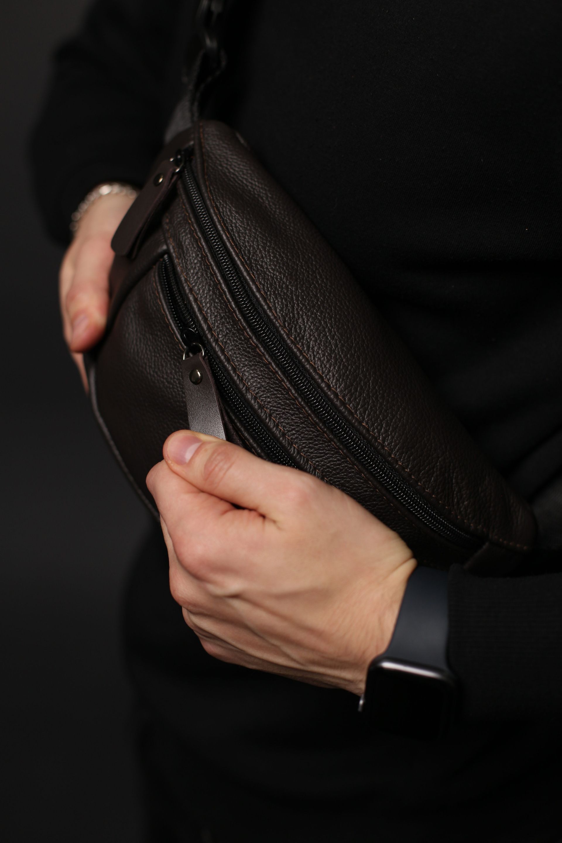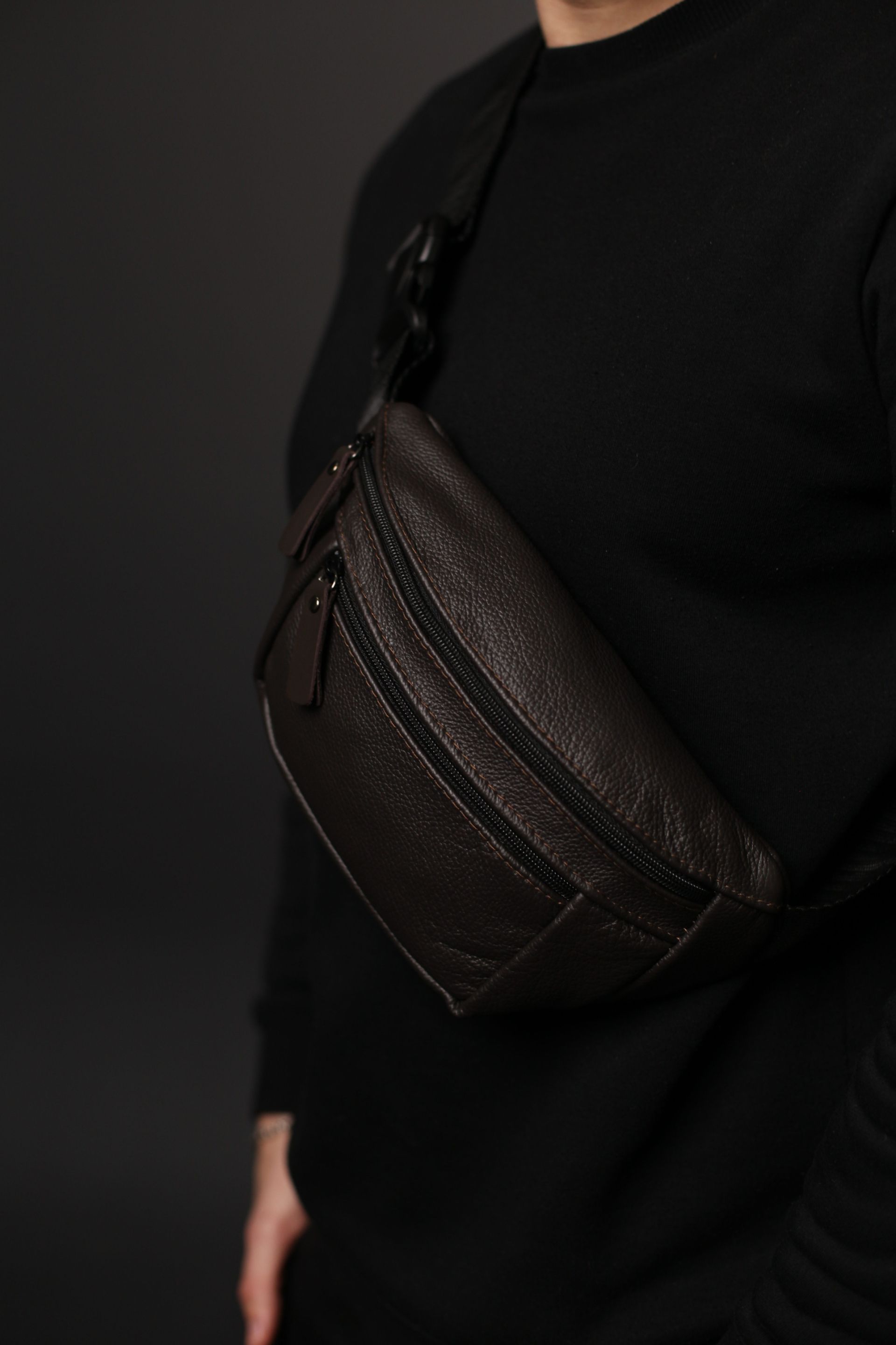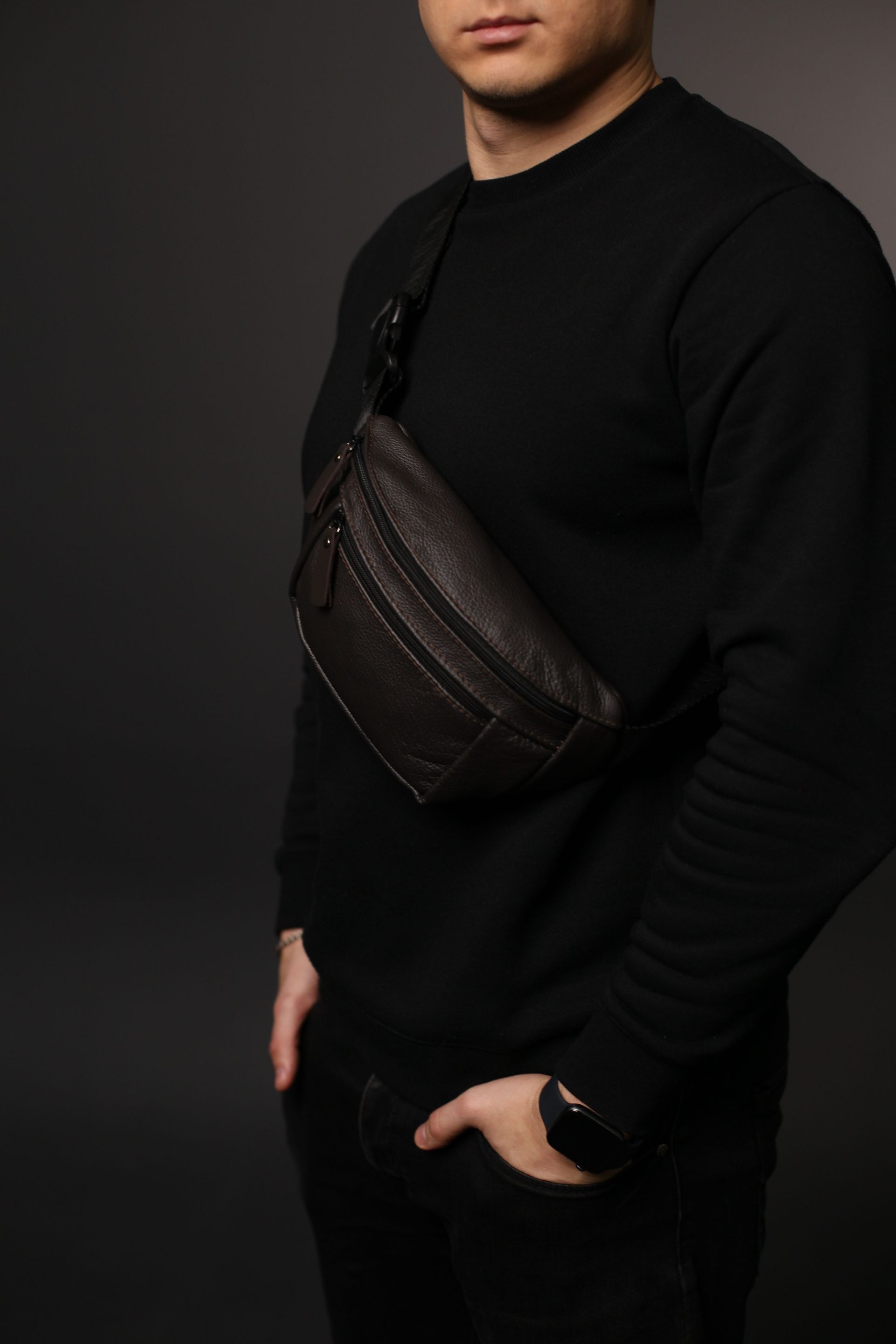 Чоловіча бананка із натуральної шкіри коричневого кольору