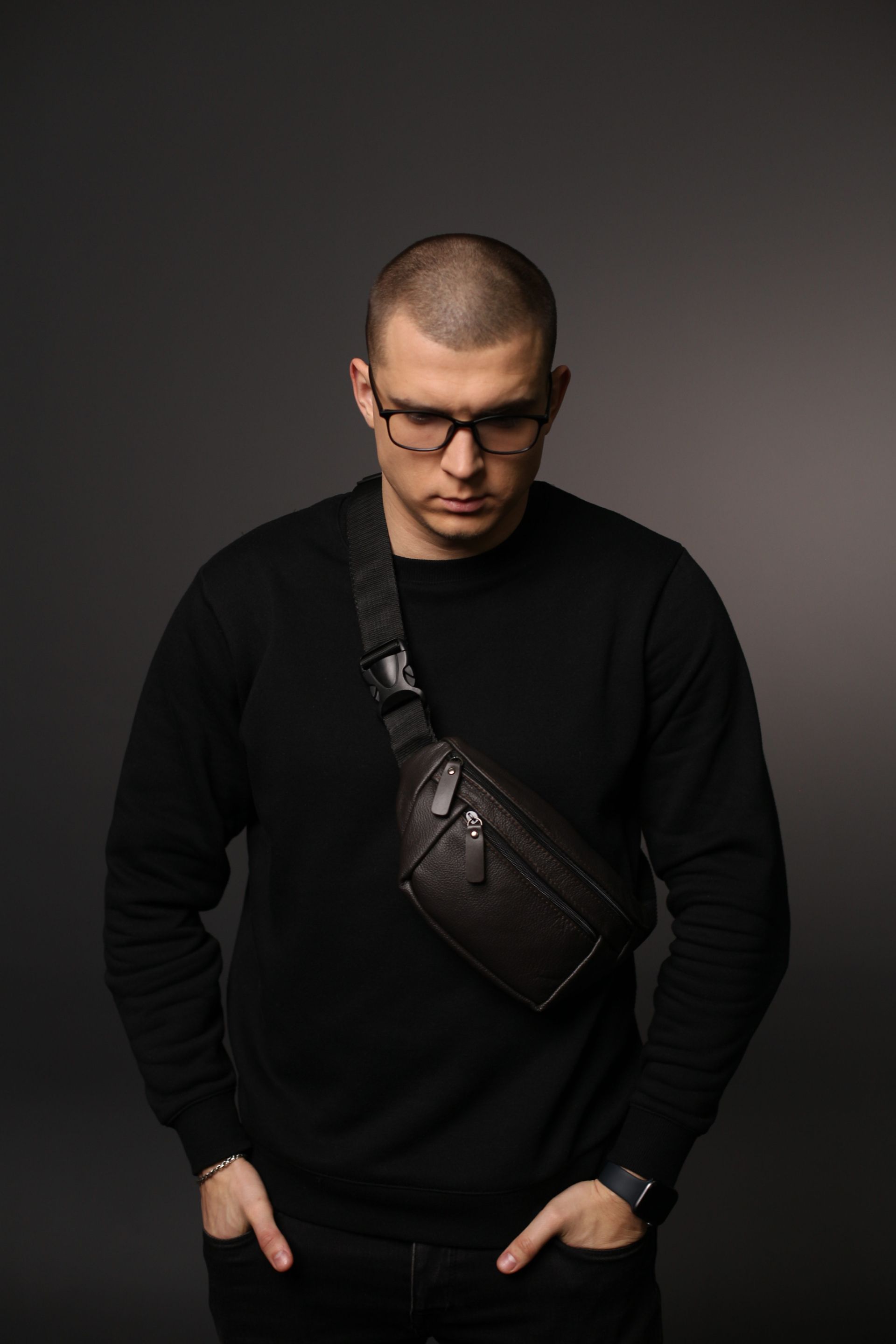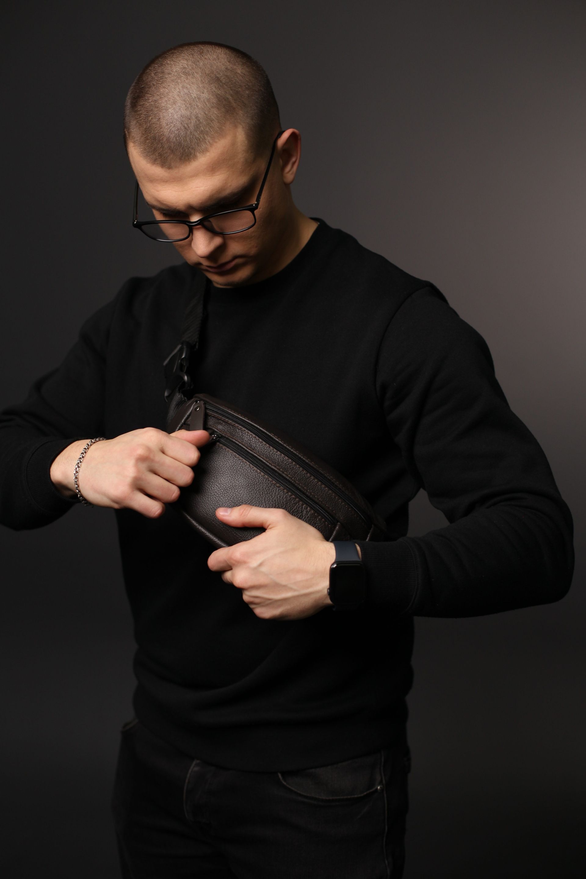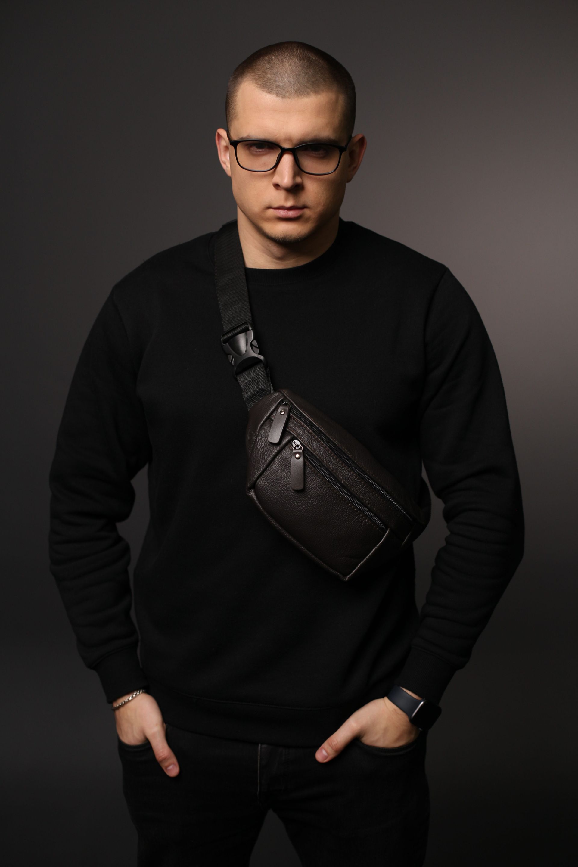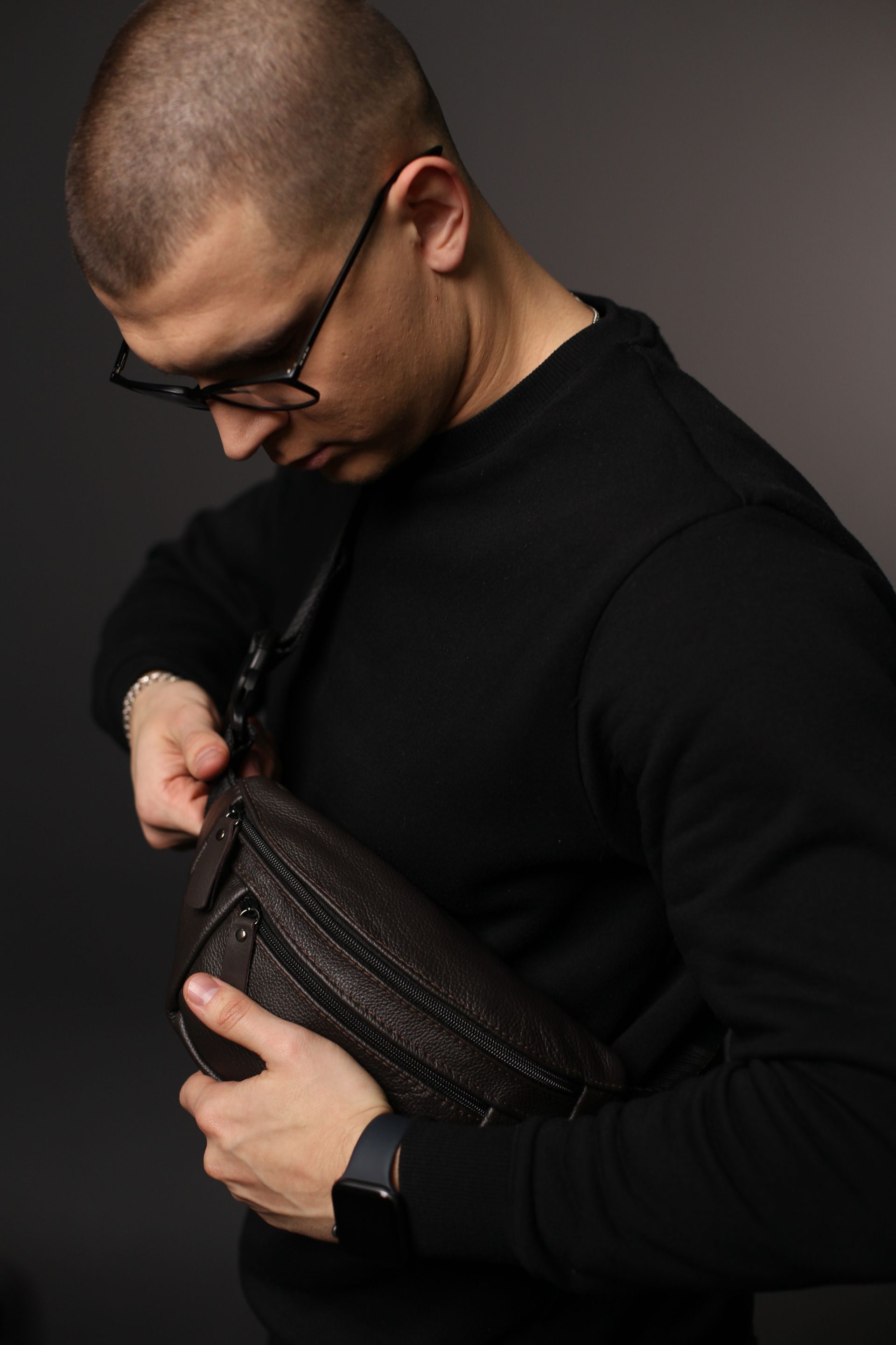 Чоловіча бананка із натуральної шкіри коричневого кольору