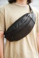 Бананка шкіряна чорна чоловіча сумка
