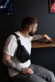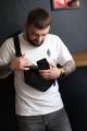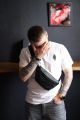 Бананка шкіряна чорна чоловіча сумка