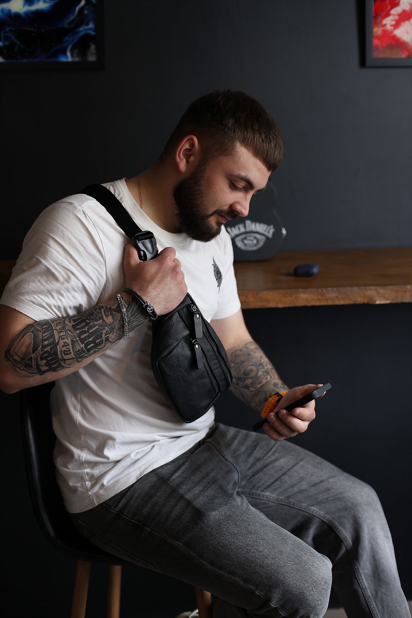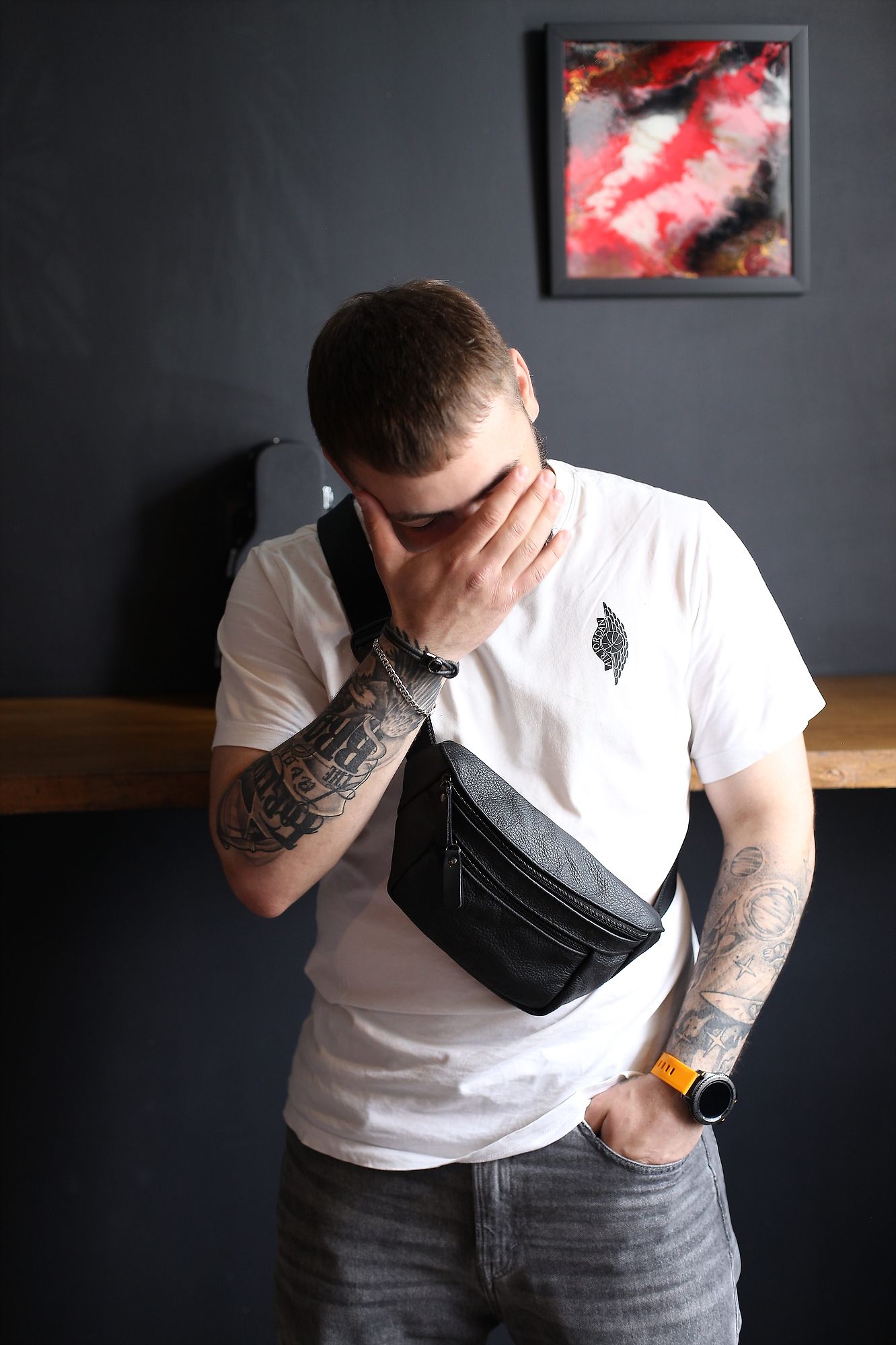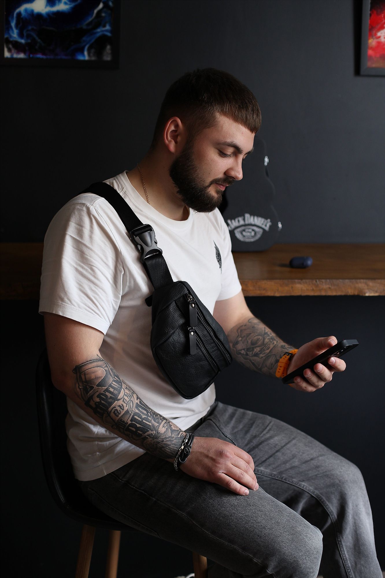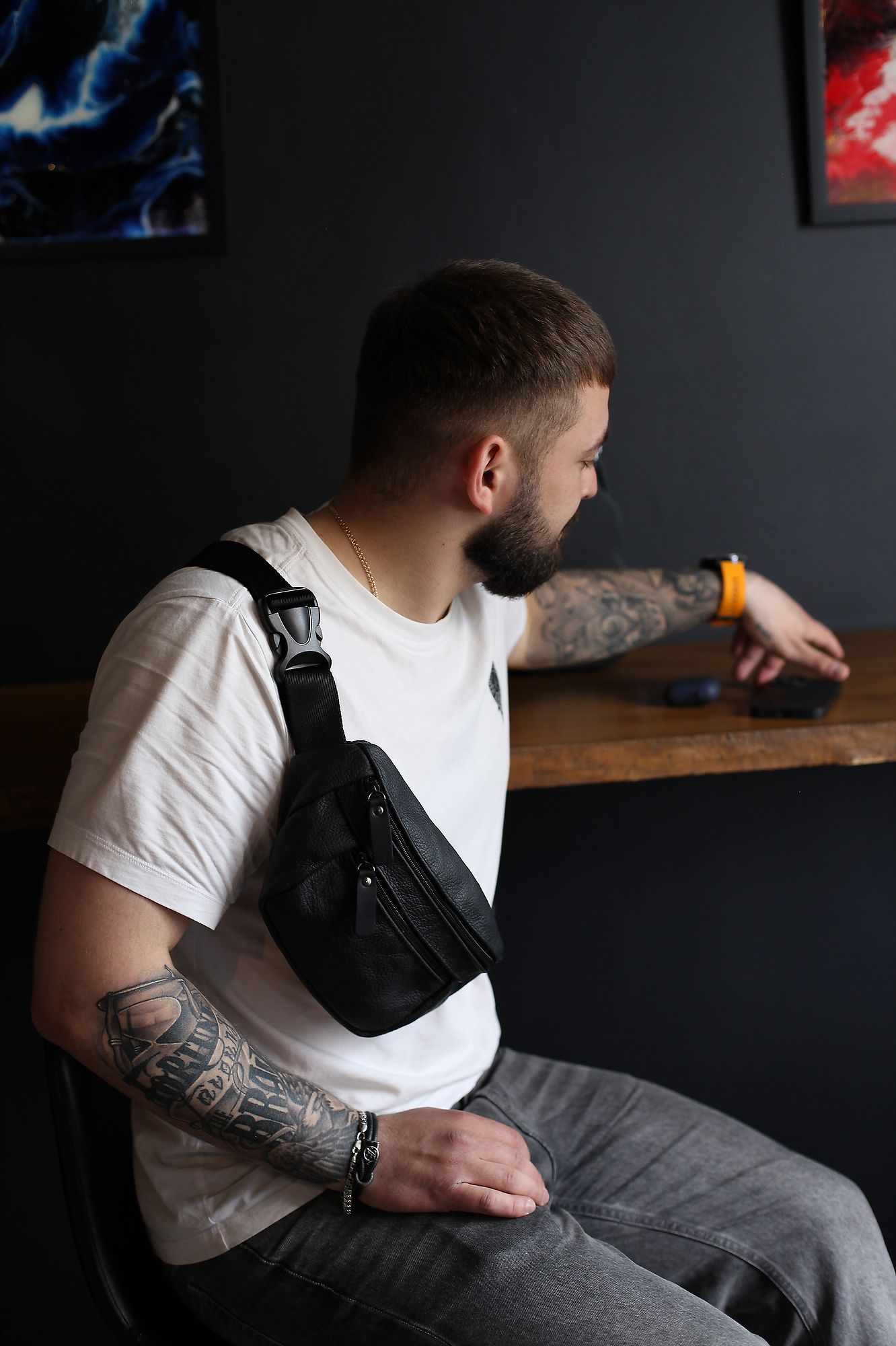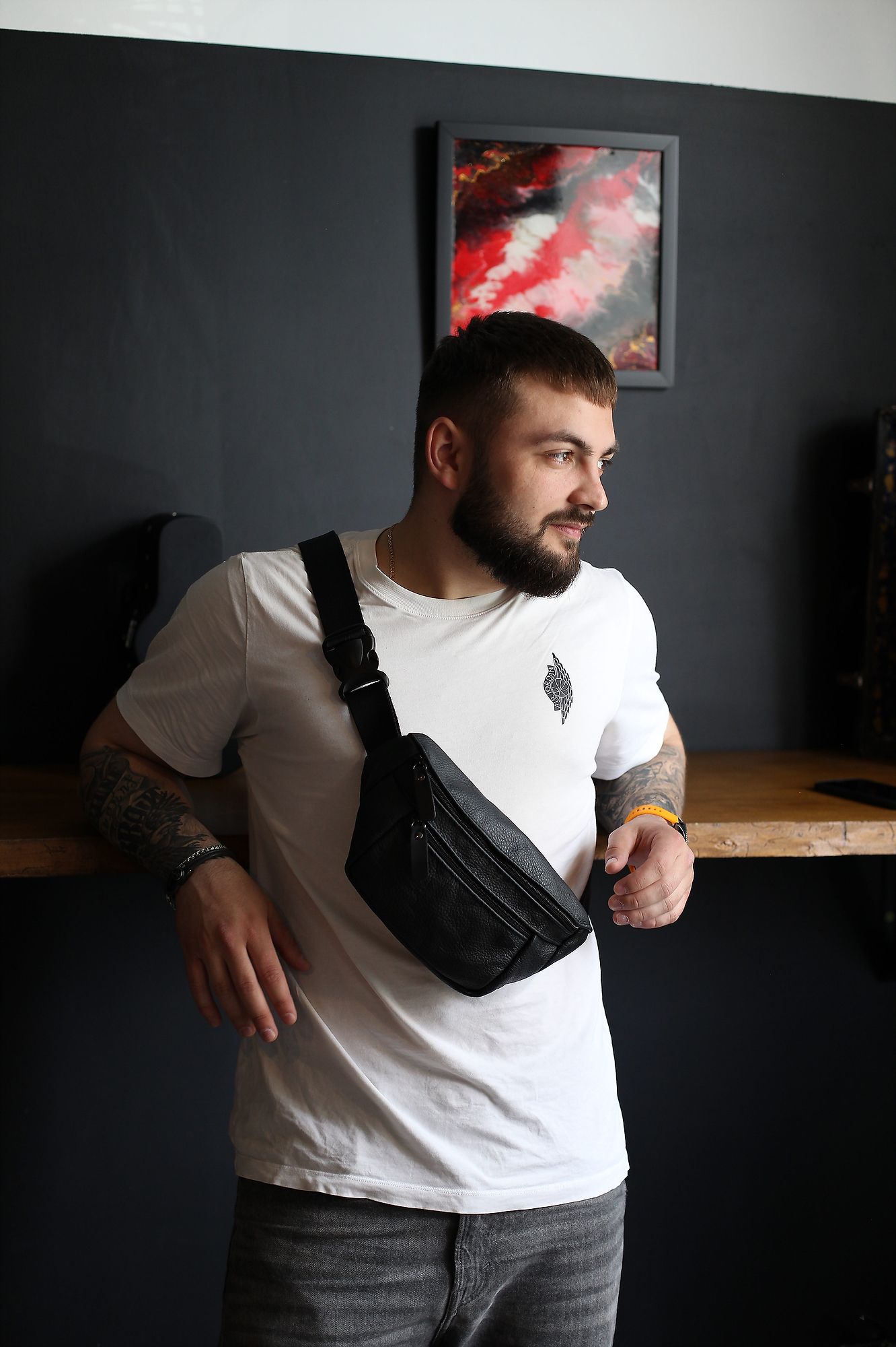 Ця стильна чоловіча поясна сумка з натуральної шкіри - ексклюзивний аксесуар, який виражає ваш смак і практичність одночасно. Виготовлена з натуральної шкіри високої якості, вона вражає своєю якістю та елегантністю.