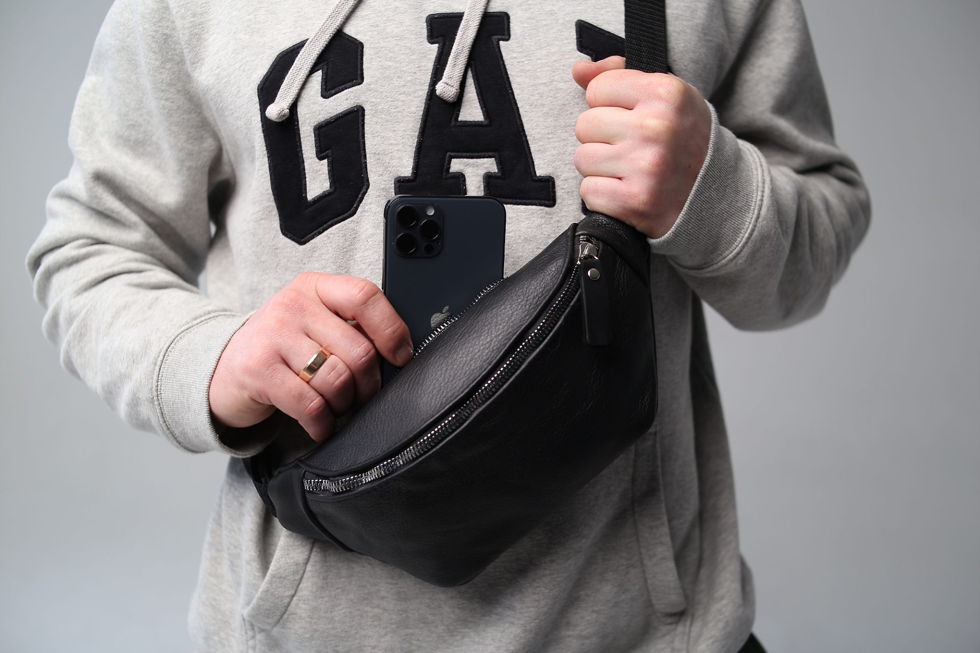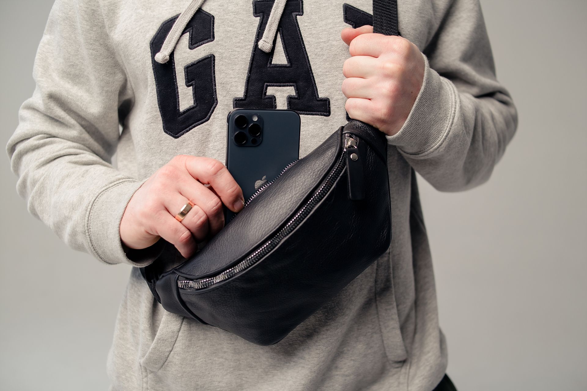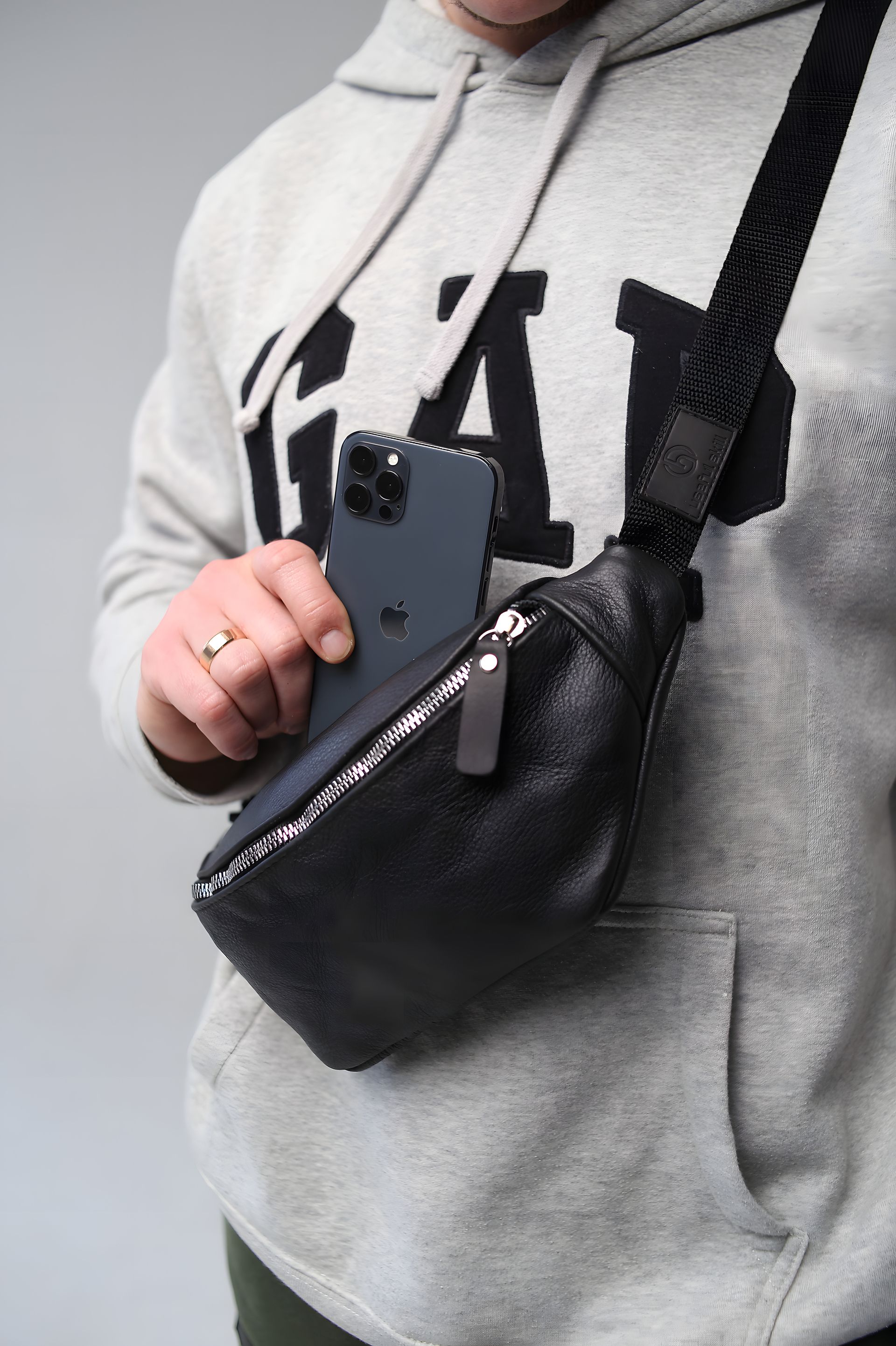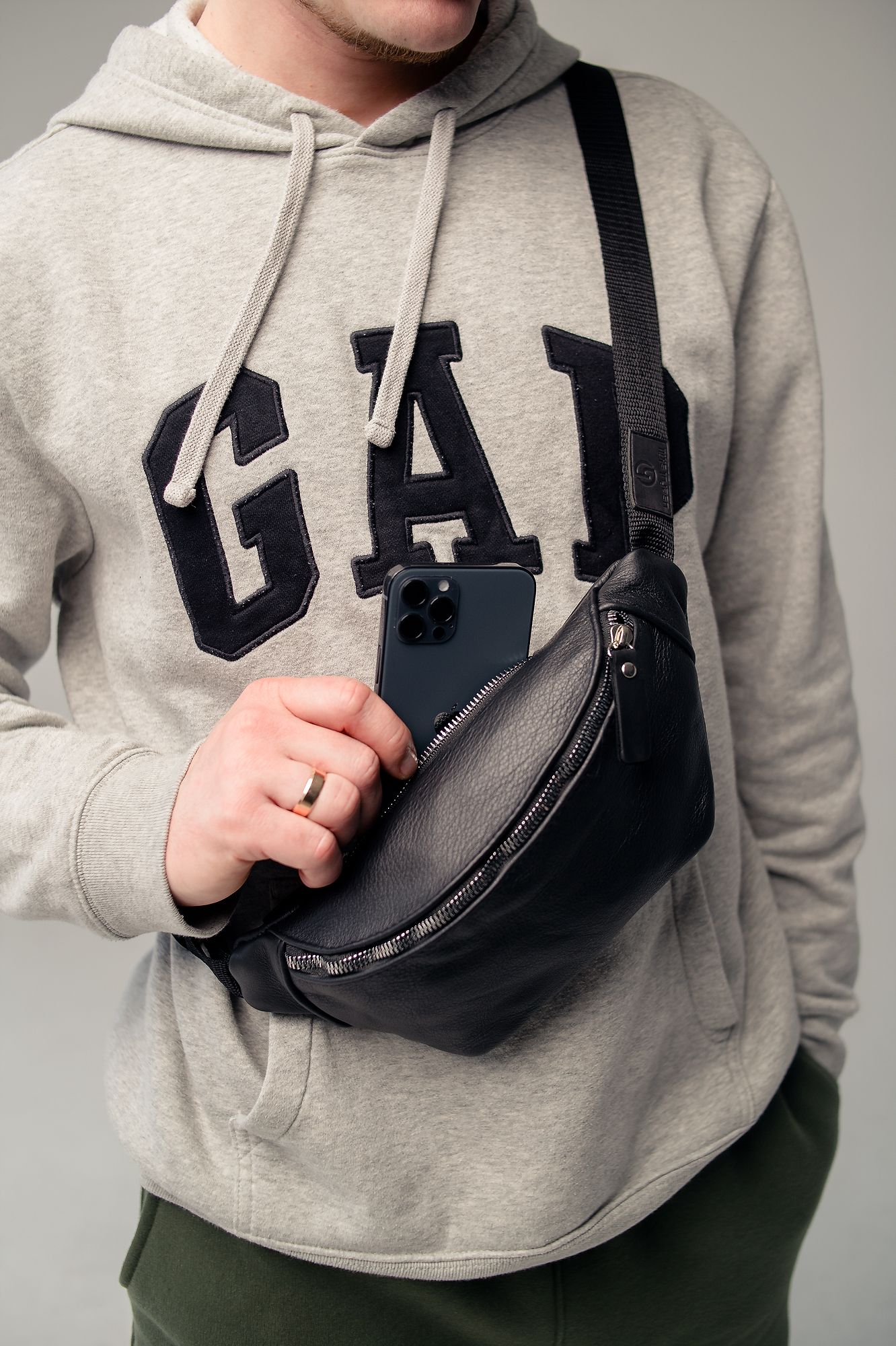 Бананка-сумка чоловіча на пояс з натуральної зернистої шкіри SKILL (чорна)