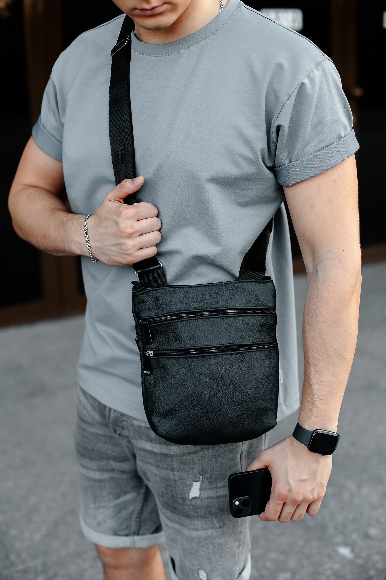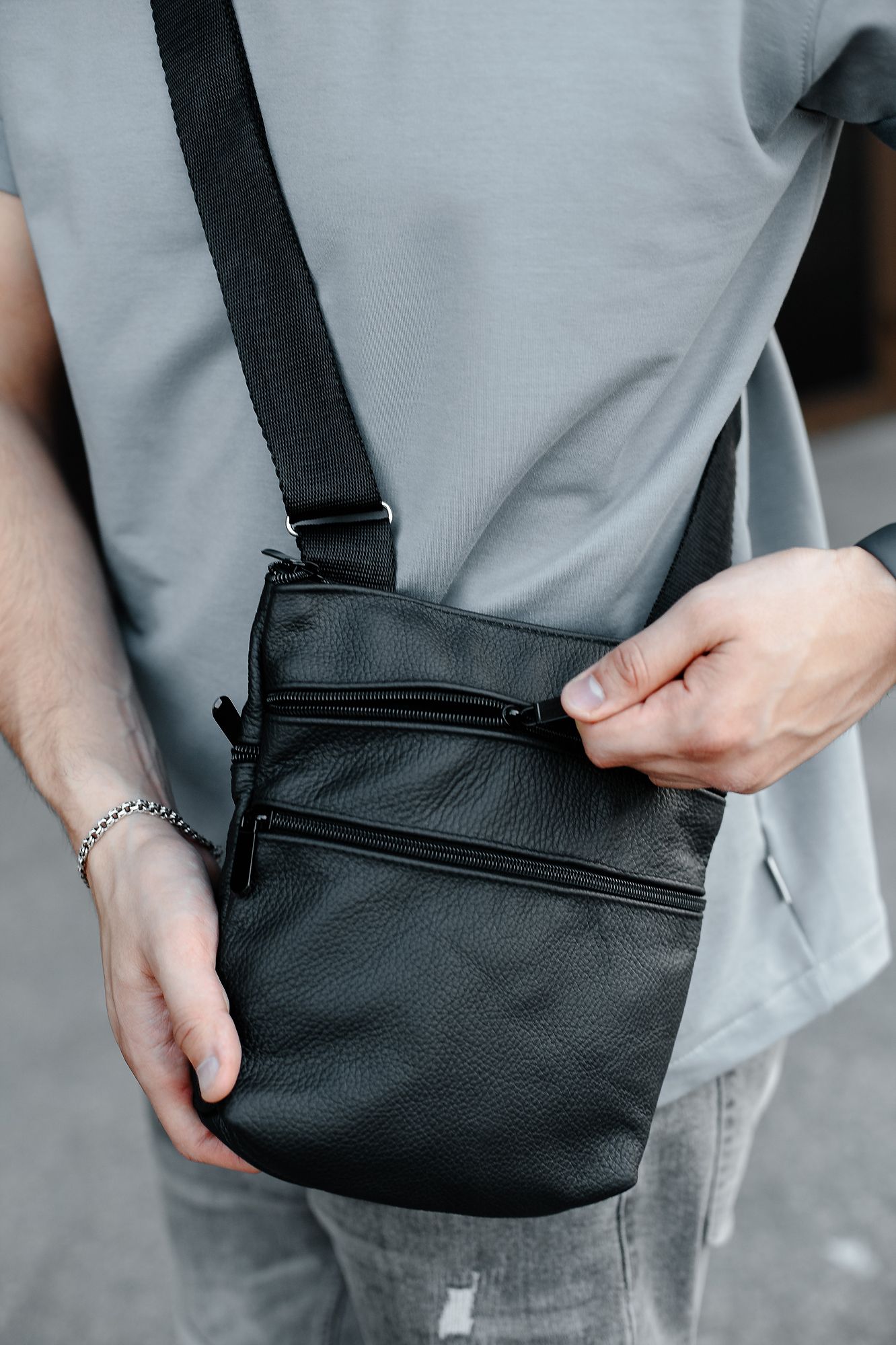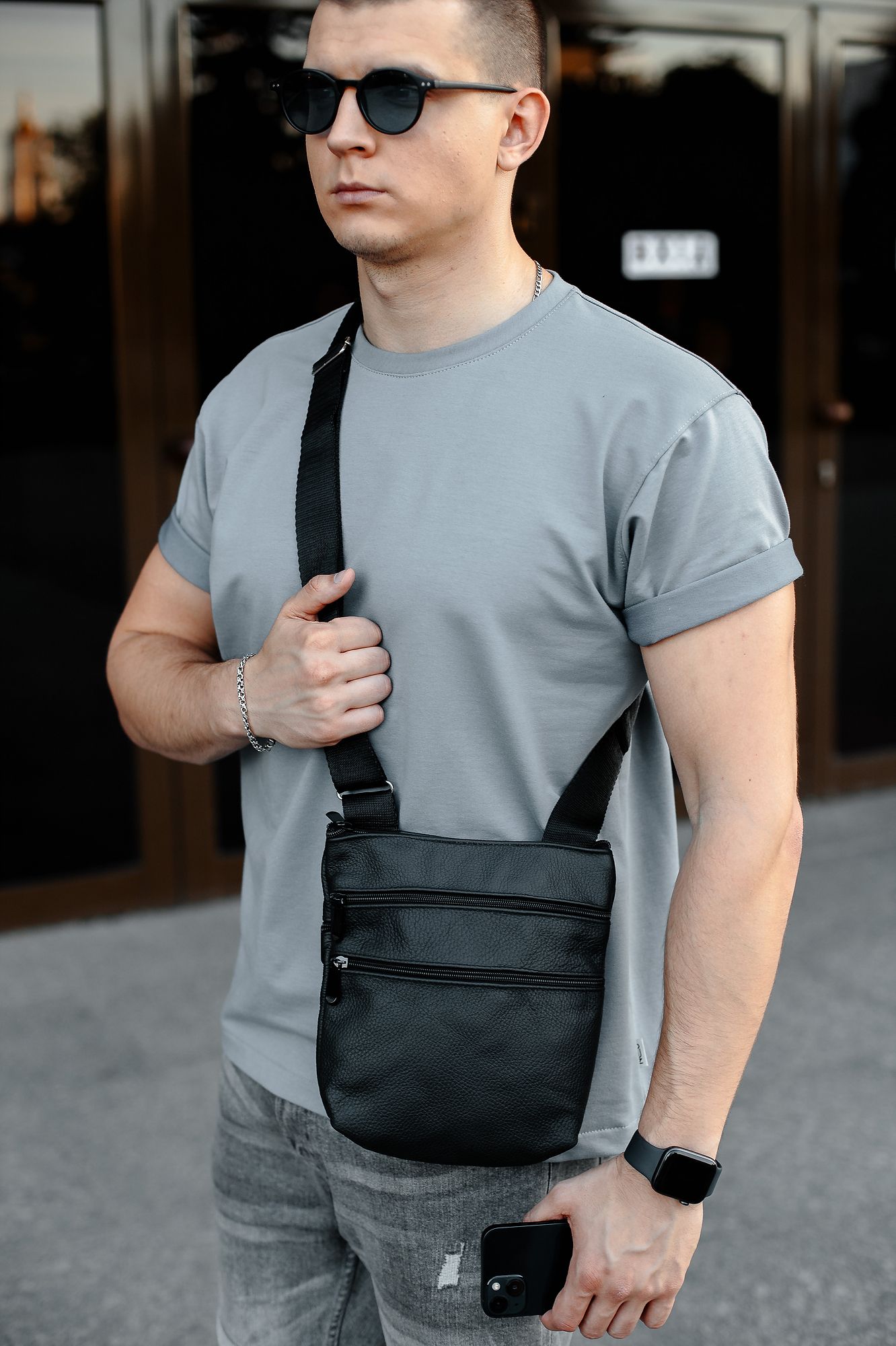 Сумка-мессенджер із натуральної зернистої шкіри, чоловіча сумка через плече
