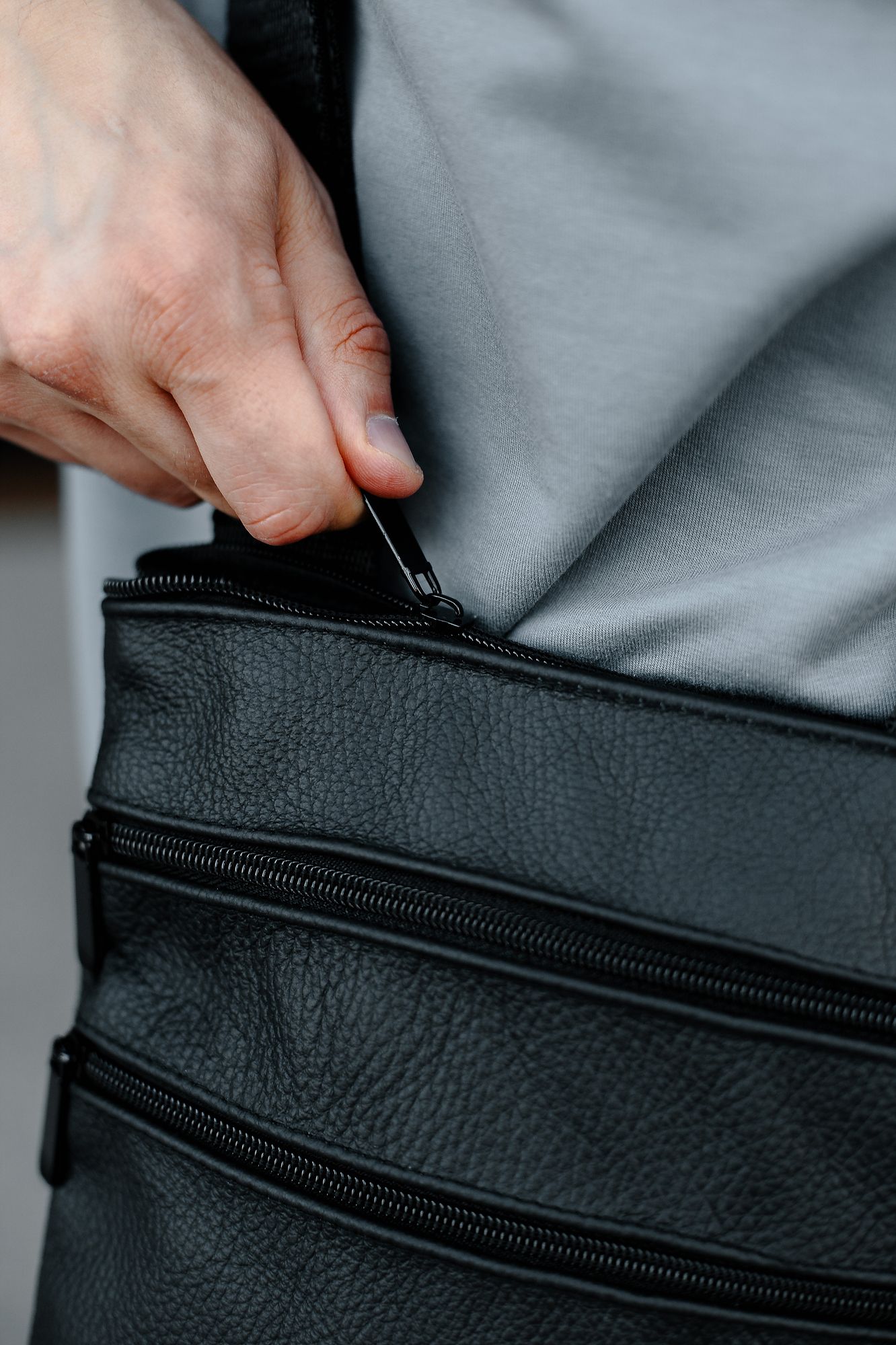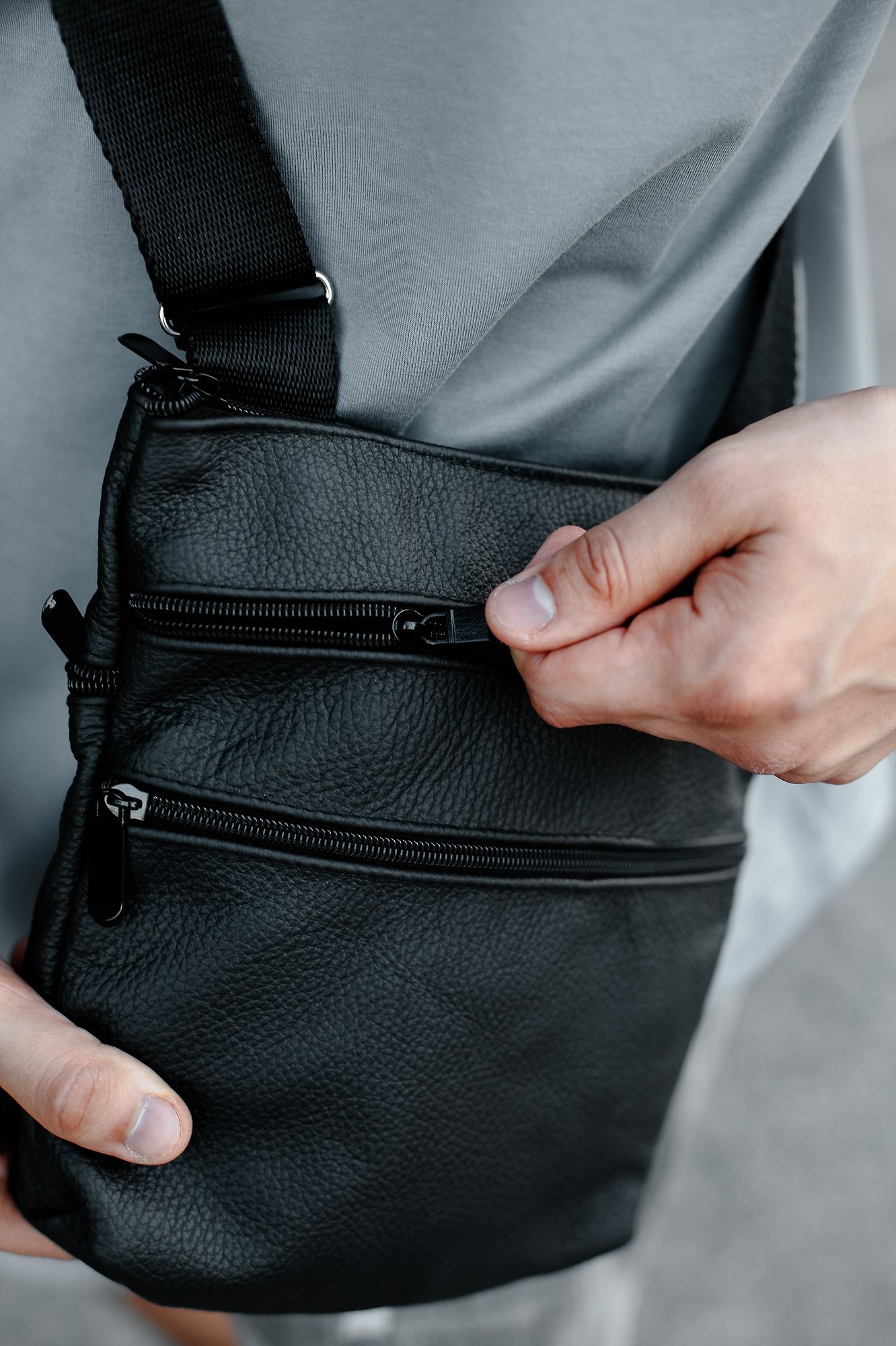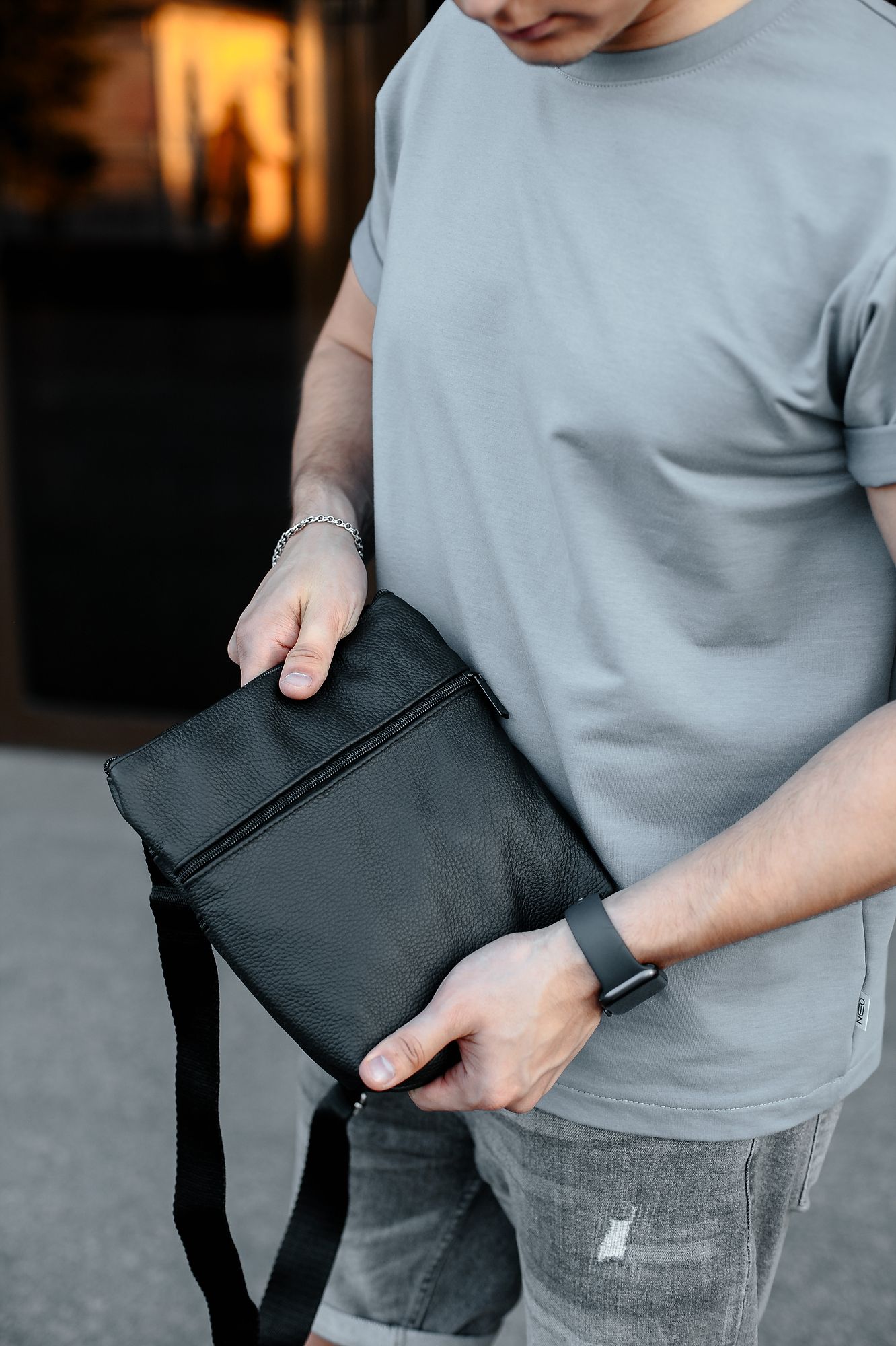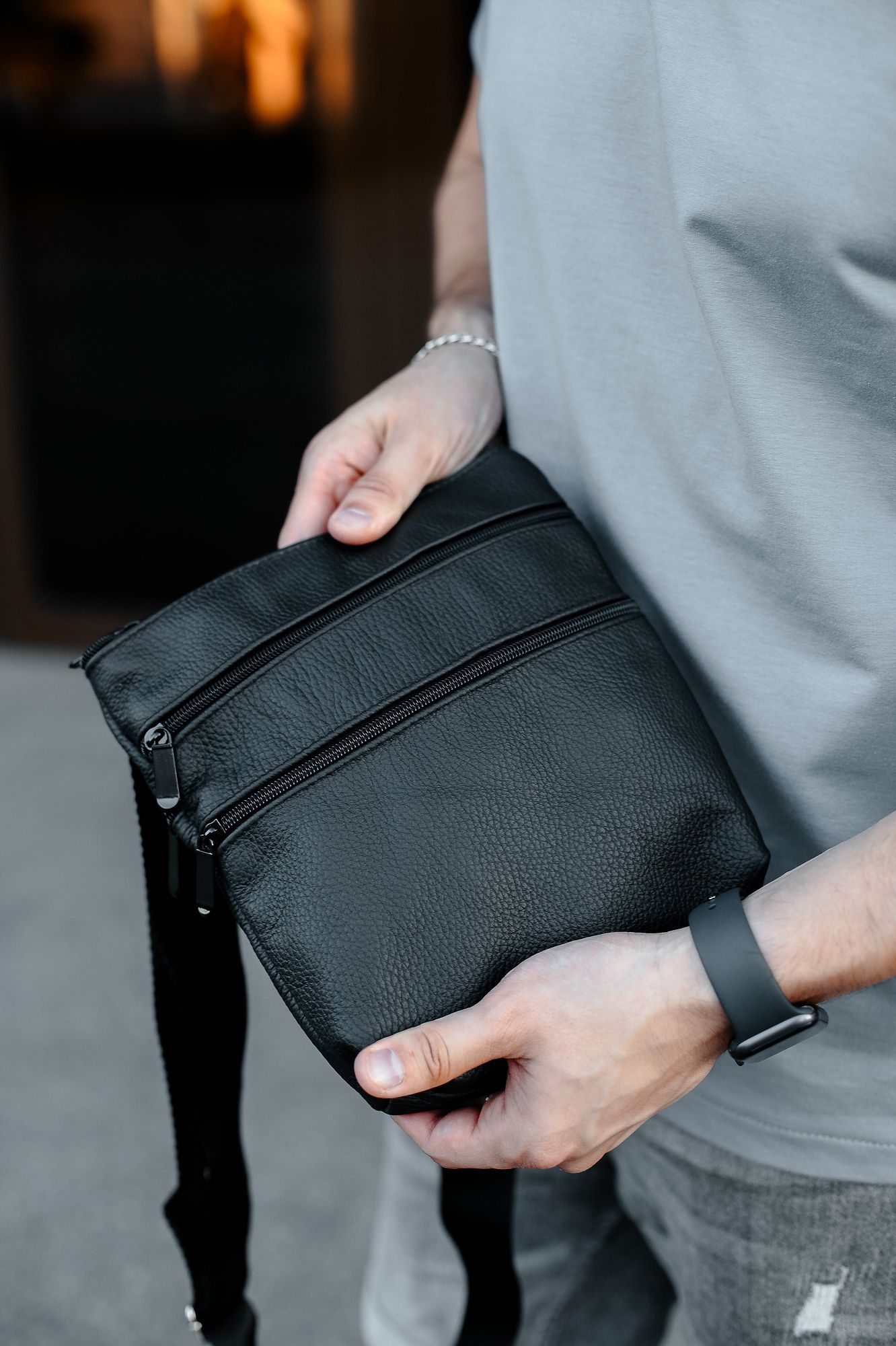 Сумка-мессенджер із натуральної зернистої шкіри, чоловіча сумка через плече