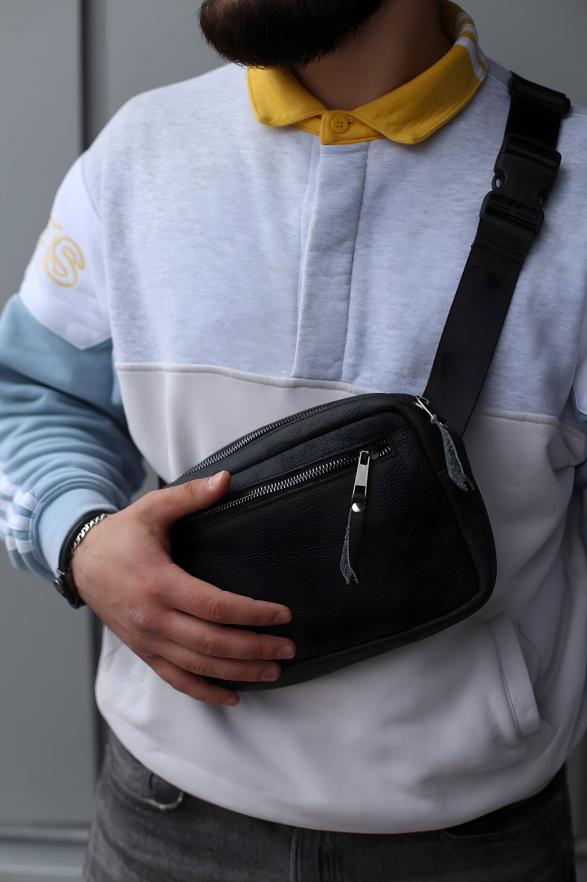 Унікальна шкіряна чоловіча сумка-кроссбоди не просто аксесуар, це втілення елегантності та вишуканості. Виготовлена з натуральної шкіри, вона поєднує в собі класичну естетику і сучасну практичність. Це ідеальний вибір для активних чоловіків, які цінують свободу рухів. Ви завжди будете готові до будь-яких подій, носячи цю сумку, яка відповідає всім потребам вашого активного способу життя. Бананка на пояс інатуральної шкіри створена, щоб ви могли носити з собою всі необхідні речі - від документів і гаджетів до гаманця - з комфортом і стилем. СТРУКТУРА: • одне основне відділення на молнії • одна внутрішня кишеня на молнії • дві внутрішні кишені без застібки • одна кишеня з лицьової сторони на молнії • одна кишеня з тильної сторони на молнії