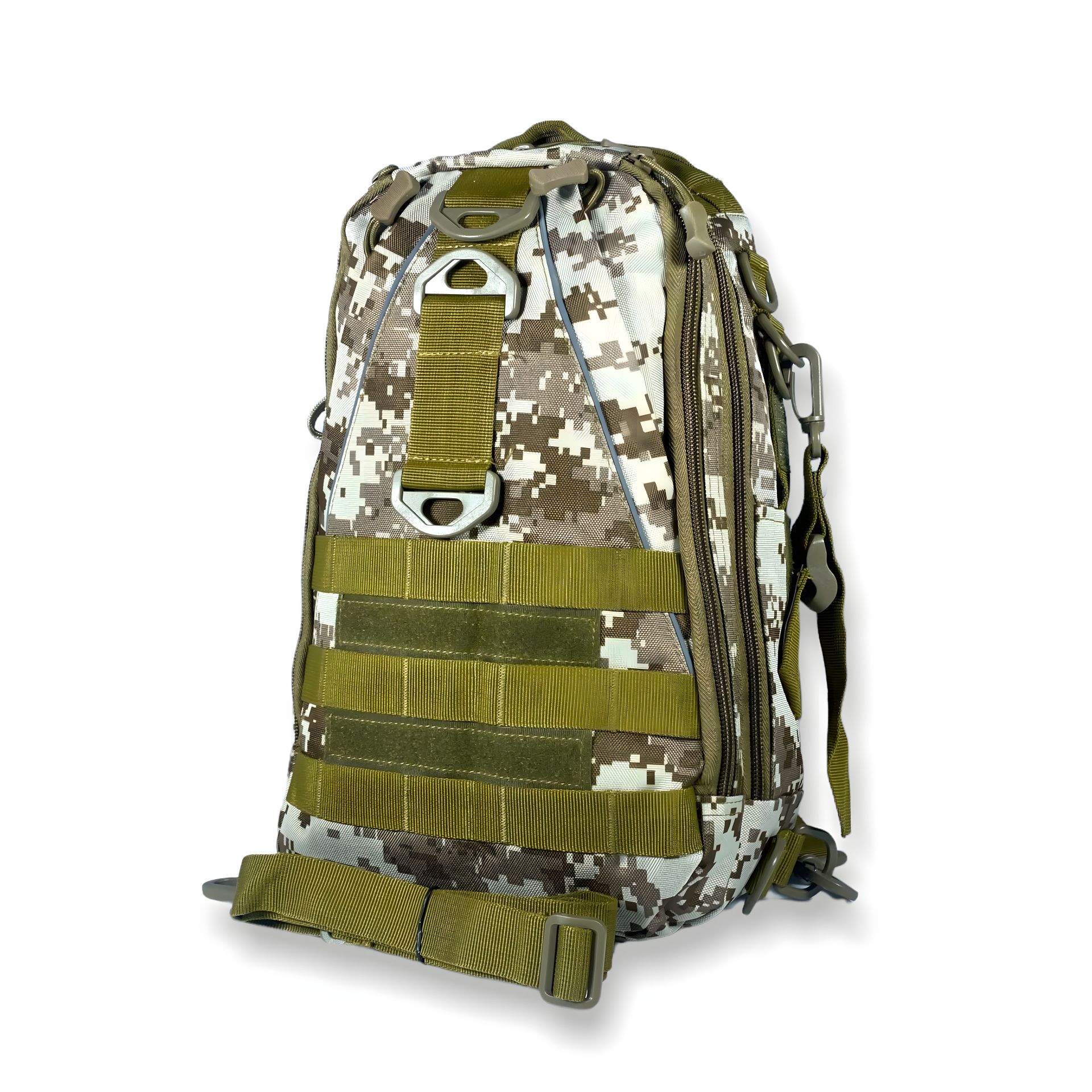 Сумка-рюкзак, слінг, через плече, два відділи, кишеня на звороті, розмір: 38*22*14 см, піксель коричневий